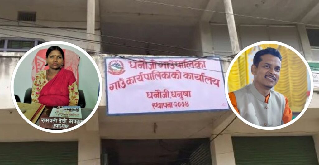 जनकपुरधाम, १० जेठ । धनुषाको धनौजी गाउँपालिकाका उपाध्यक्ष रामवती मण्डलले प्रमुख प्रशासकीय अधिकृत रञ्जित कुमार यादवमाथि हातपात गरेकी छन् ।