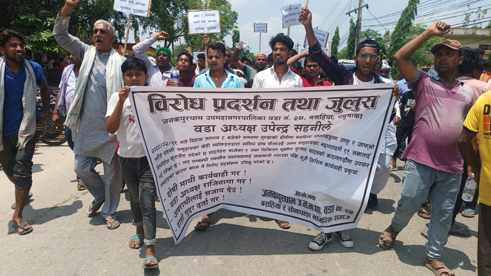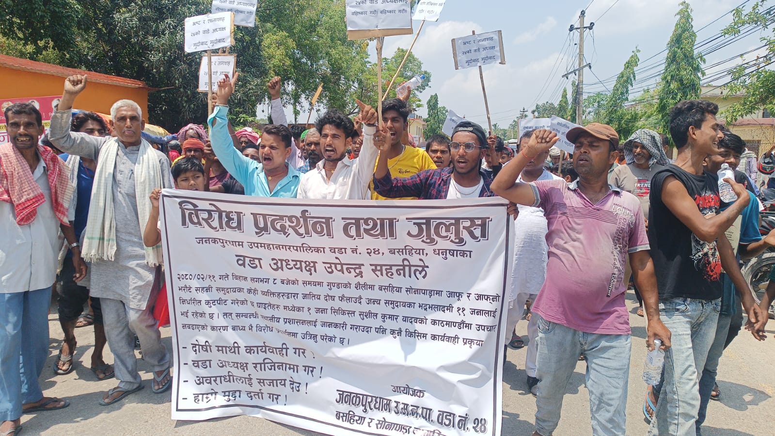 स्थानीयबासीहरुले सोही वडाका वडाध्यक्ष उपेन्द्र सहनीविरुद्ध विरोध प्रदर्शन गर्दै आइतबार दिउँसो जिल्ला प्रशासन कार्यालय धनुषा घेराउ गरेका हुन् ।