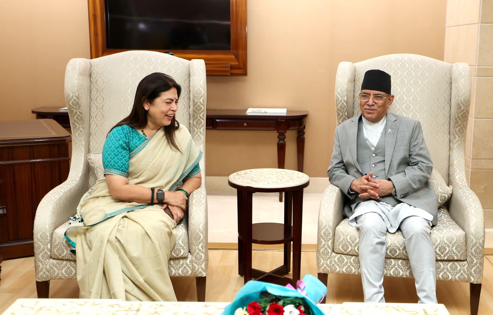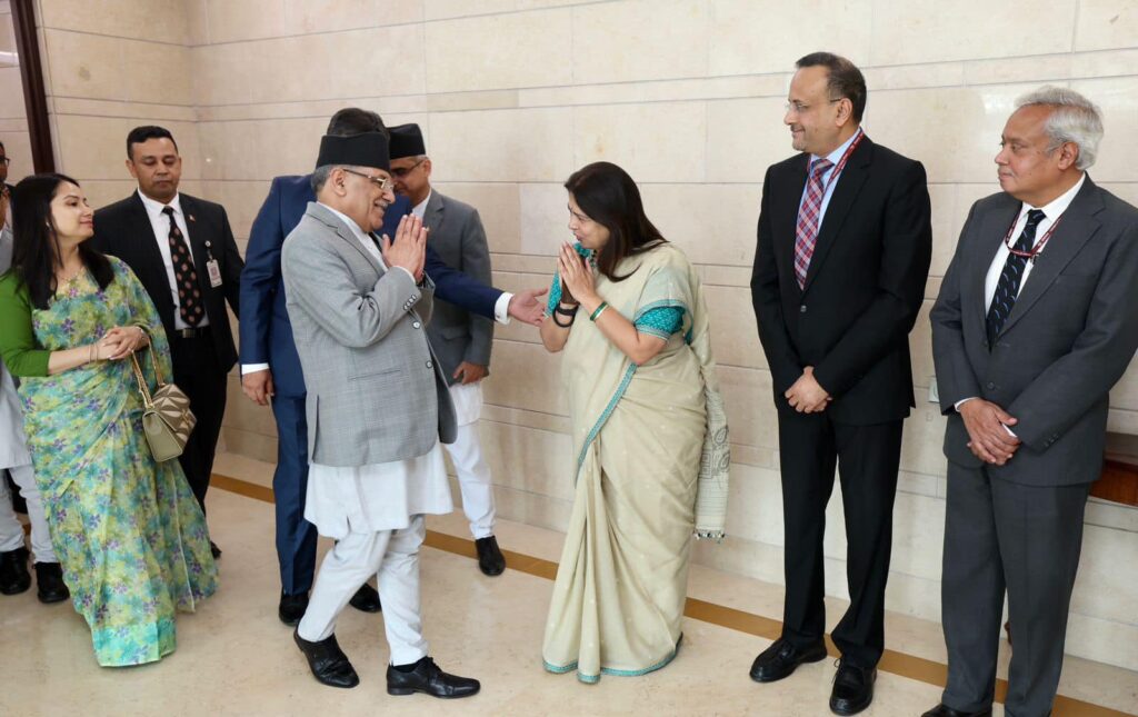नयाँदिल्लीमा प्रधानमन्त्री प्रचण्डलाई विदेश राज्यमन्त्री मीनाक्षी लेखीले गरिन् स्वागत
