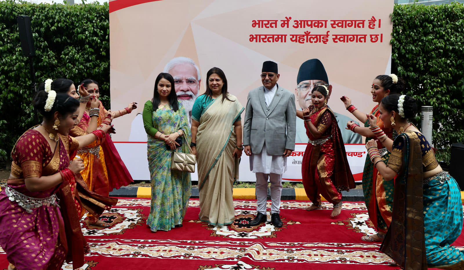 इन्दिरा गान्धी अन्तर्राष्ट्रिय विमानस्थलमा अवतरण गरेका प्रधानमन्त्री प्रचण्डलाई विदेश तथा संस्कृति राज्यमन्त्री मीनाक्षी लेखीले स्वागत गरेकी छन् ।