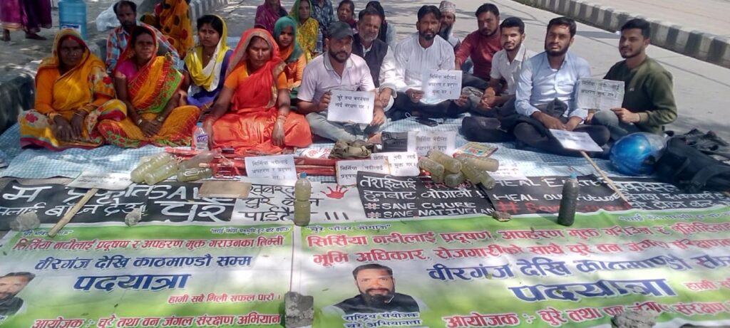 वीरगञ्जको सिर्सिया नदीलाई प्रदूषण र अतिक्रमणमुक्त बनाउन दूषित पानी लिएर ११ दिनसम्म पैदल यात्रा गर्दै काठमाडौं पुगेका अभियन्ताहरु सात दिनदेखि धर्नामा बसेका हुन् ।