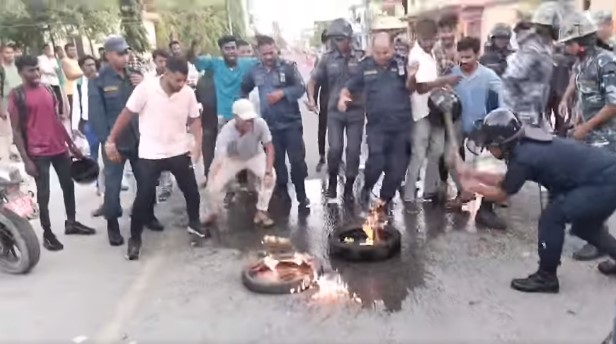 सर्वोच्चको निर्णयविरुद्ध जनकपुरधाममा टायर बालेर विरोध प्रदर्शन