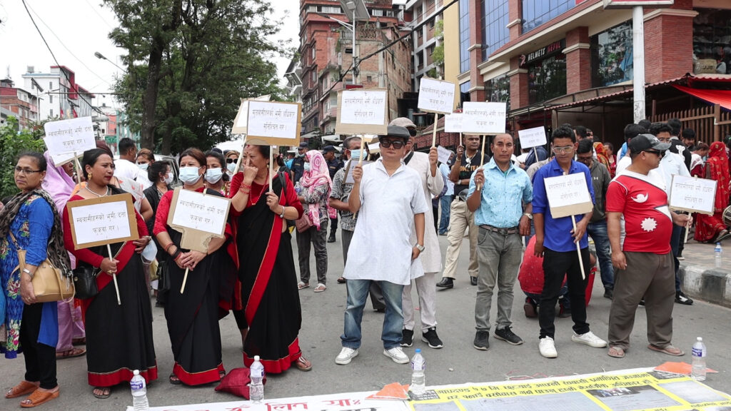 भूमि दर्ता रोक्का फुकुवा गर्न माग गर्दै विरोध प्रदर्शन