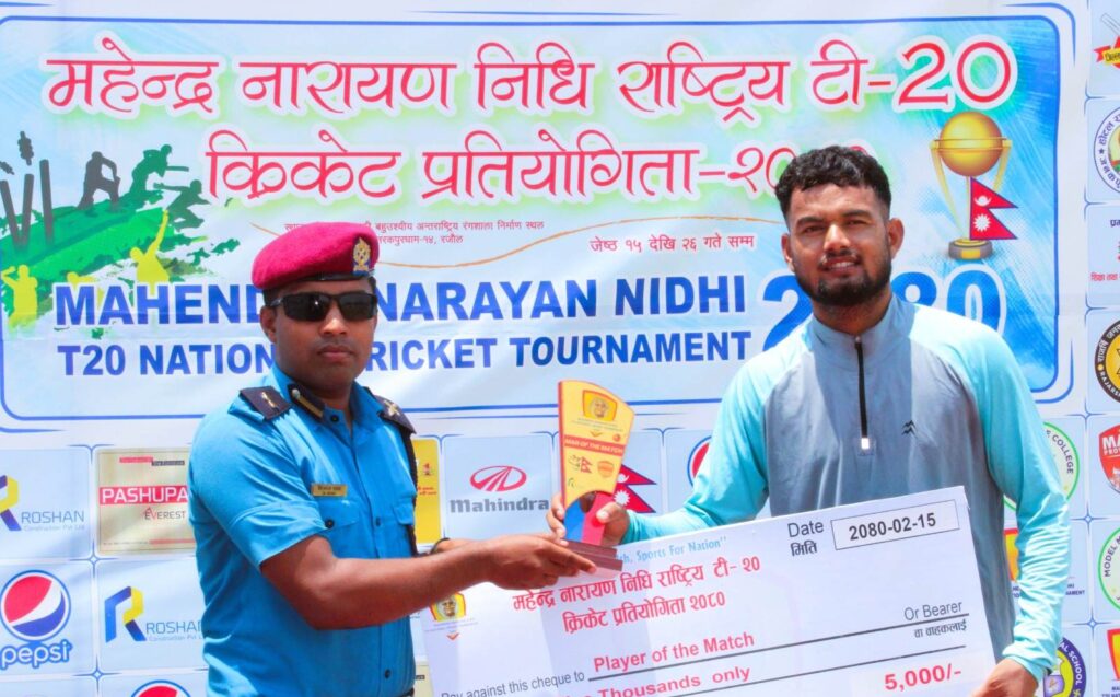 कप्तान अंकित सुवेदीले २५ बलमा १८, समीर कार्कीले ११, फिर्दोस अन्सरी ६, मिनास थापा ६, सोनु अन्सारीले ९, सुजन थपलियाले २, दीपेश कंडेले २, कमल खत्रीले २ र प्रकाश कार्कीले १ रनको योगदान गरे ।