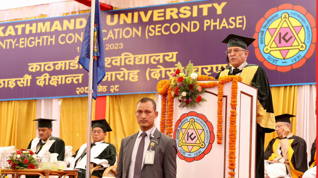 काभ्रेपलाञ्चोकको धुलिखेलमा आइतबार आयोजित काठमाडौं विश्वविद्यालयको २८औँ दीक्षान्त (दोस्रो चरण) समारोहलाई सम्बोधन गर्दै प्रधानमन्त्री दाहालले विश्वविद्यालयमा स्नातकोत्तर तहका पाठ्यक्रममा अनुसन्धान र नवप्रवर्तनलाई प्राथमिकता दिनुपर्ने तथा स्नातक तहमा बढी अभ्यासमुखी र सिकाइमा जोड दिनुपर्ने बताएका हुन् ।