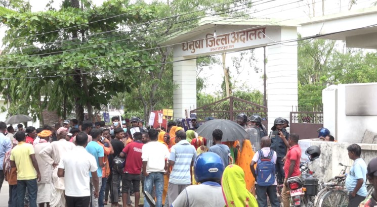 जनकपुरधाम, ३ असार । धनुषामा रहस्यमय मृत्यु भएको आरती साहका लागि न्याय माग्दै माइतीपक्षले जनकपुरधाममा प्रदर्शन गरेका छन् । धनुषा प्रहरीले हत्यारालाई जोगाउन खोजेको भन्दै माइतीपक्षले आइतबार धनुषा जिल्ला अदालत अगाडि प्रदर्शन गरेका हुन् ।
