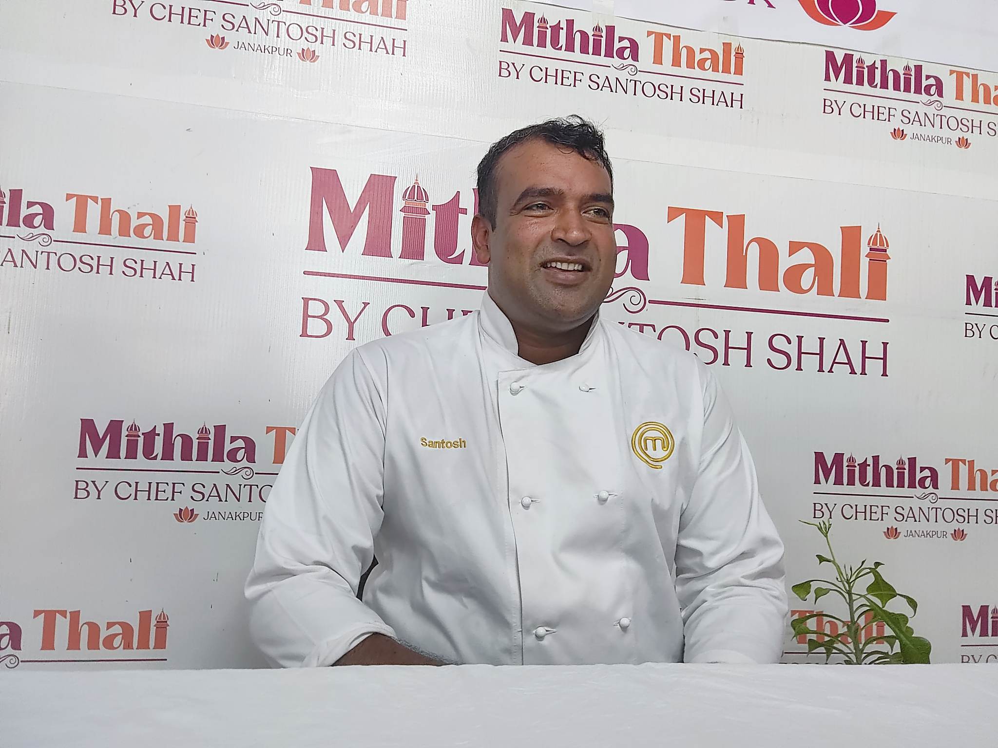 मास्टर सेफ सन्तोष साहले जनकपुरधाममा विशेष सुविधासहितको रेष्टुरेन्ट ‘मिथिला थाली’ औपचारिक रुपमा सञ्चालनमा ल्याएका छन् ।बेलायतको रियालिटी कुकरी टिभी शृंखलाका विजेता साहले जनकपुरधामको रामानान्द चोकमा ‘मिथिला थाली बाइ सेफ सन्तोष साह’ नामक रेष्टुरेन्ट मंगलबारदेखि सञ्चालनमा ल्याएका हुन् ।