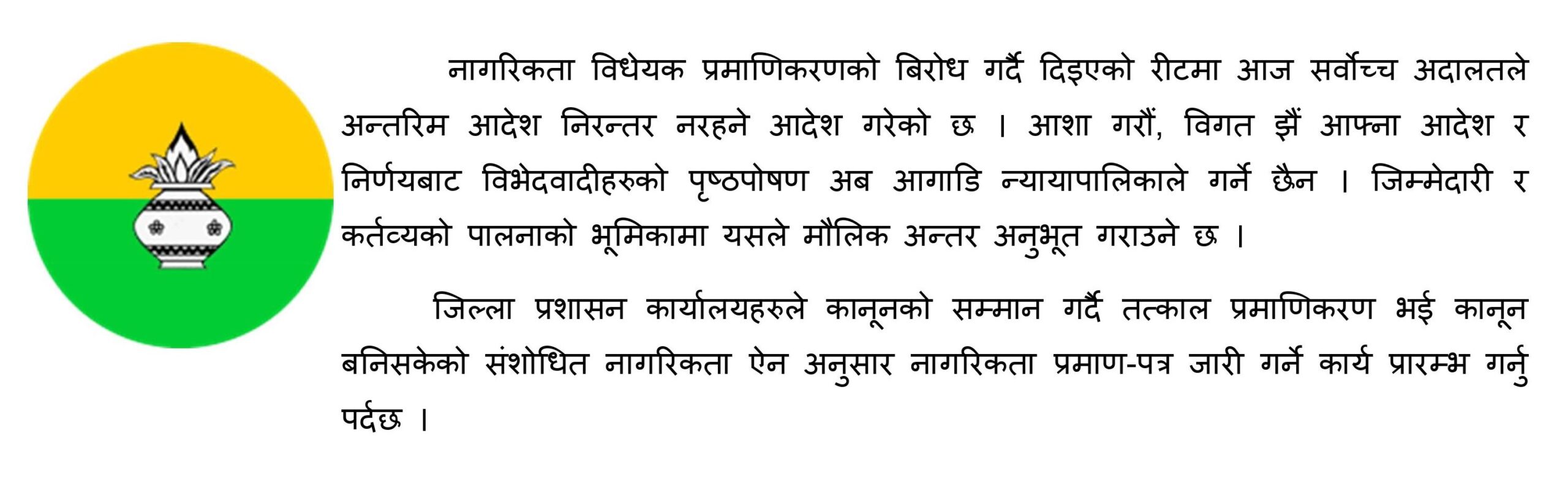 नागरिकता विधेयक प्रमाणीकरणको विरोध गर्दै दिइएको रिटमा सर्वोच्च अदालतले अन्तरिम आदेश निरन्तर नरहने आदेश दिएसँगै तमलोपाले यस्तो आग्रह गरेको हो ।