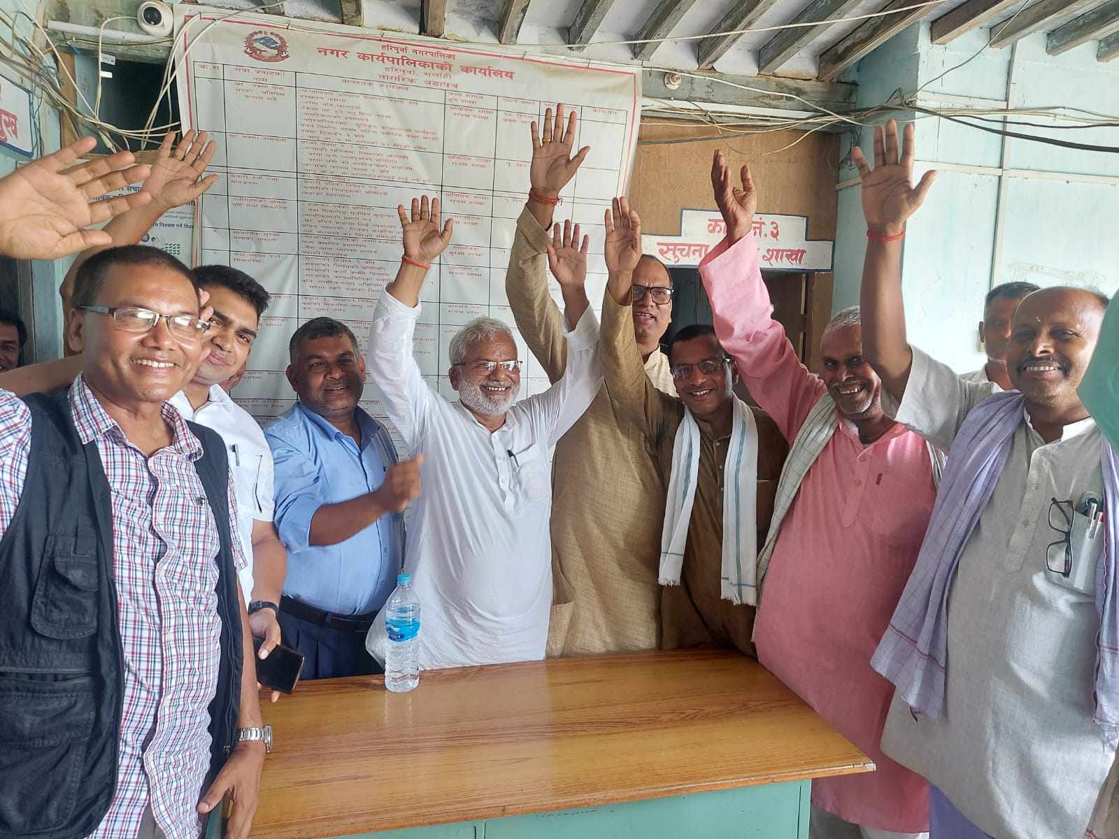 प्रदेश सांसद जंगिलाल राय, कौशल किशोर राय, संघर्ष समितिका संयोजक बिकाउ राय, हरिपूर्वाका नगरप्रमुख बिनोद कुमार साह तथा प्रमुख प्रशासकिय अधिकृतको रुपमा हाजिर भएका निमेष मिश्र लगायतको उपस्थितीमा नगरप्रमुखको कार्यकक्ष, प्रमुख प्रशासकिय अधिकृतको कार्यकक्ष तथा लेखा शाखाको कार्यकक्षमा लगाएको ताला खोलेर पालिकाको कार्यालय संचालन गरिएको छ ।