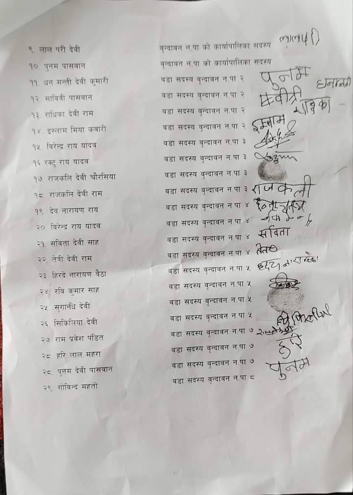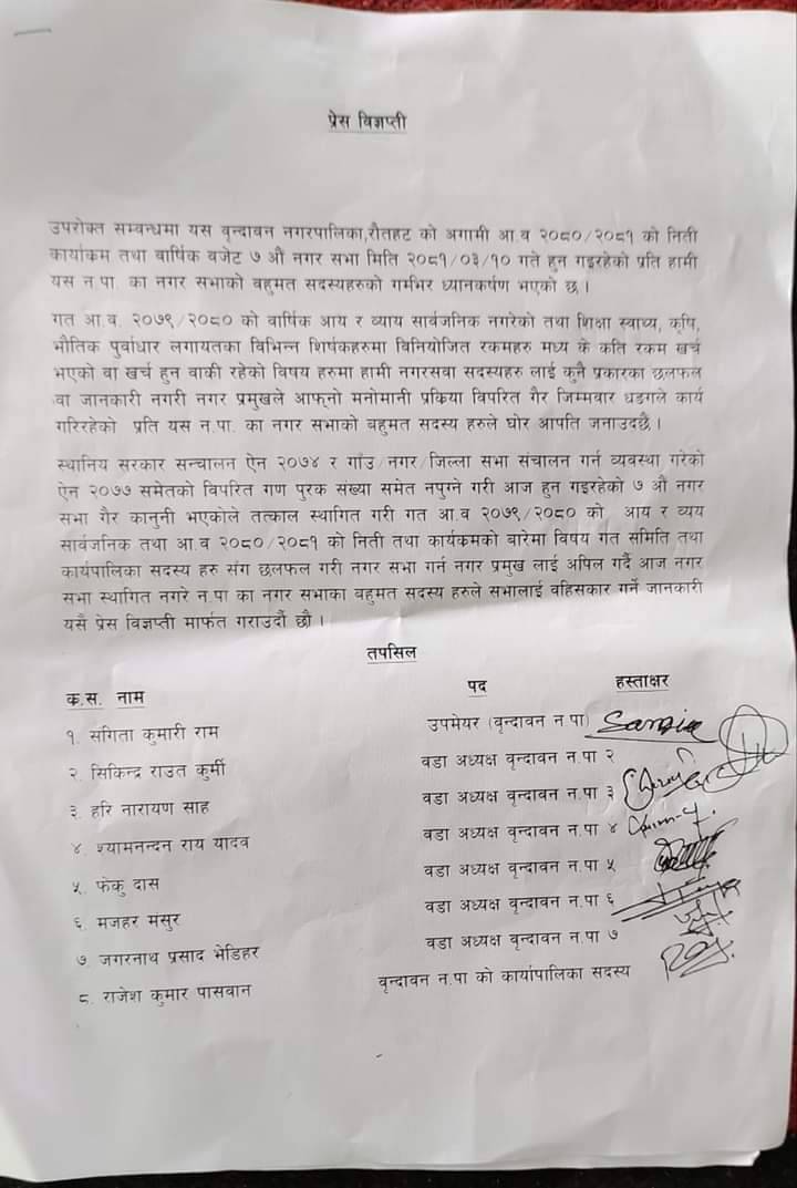 उपमेयरको नेतृत्वमा वृन्दावन नगरपालिकाको नगरसभा बहिष्कार