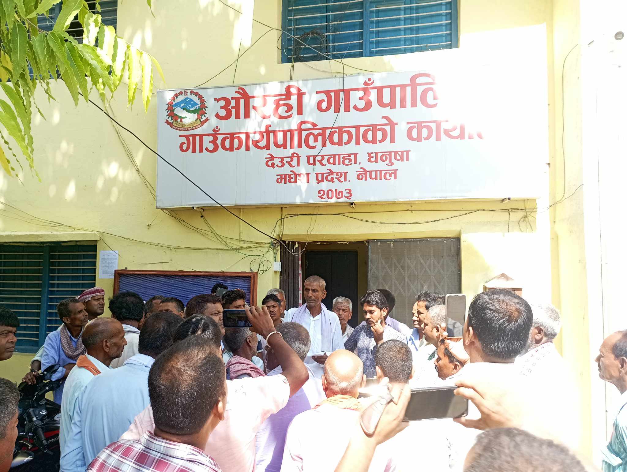 जनकपुरधाम, १२ असार । धनुषाको औरही गाउँपालिकामा जनप्रतिनिधिहरुले नै तालाबन्दी गरेका छन् ।