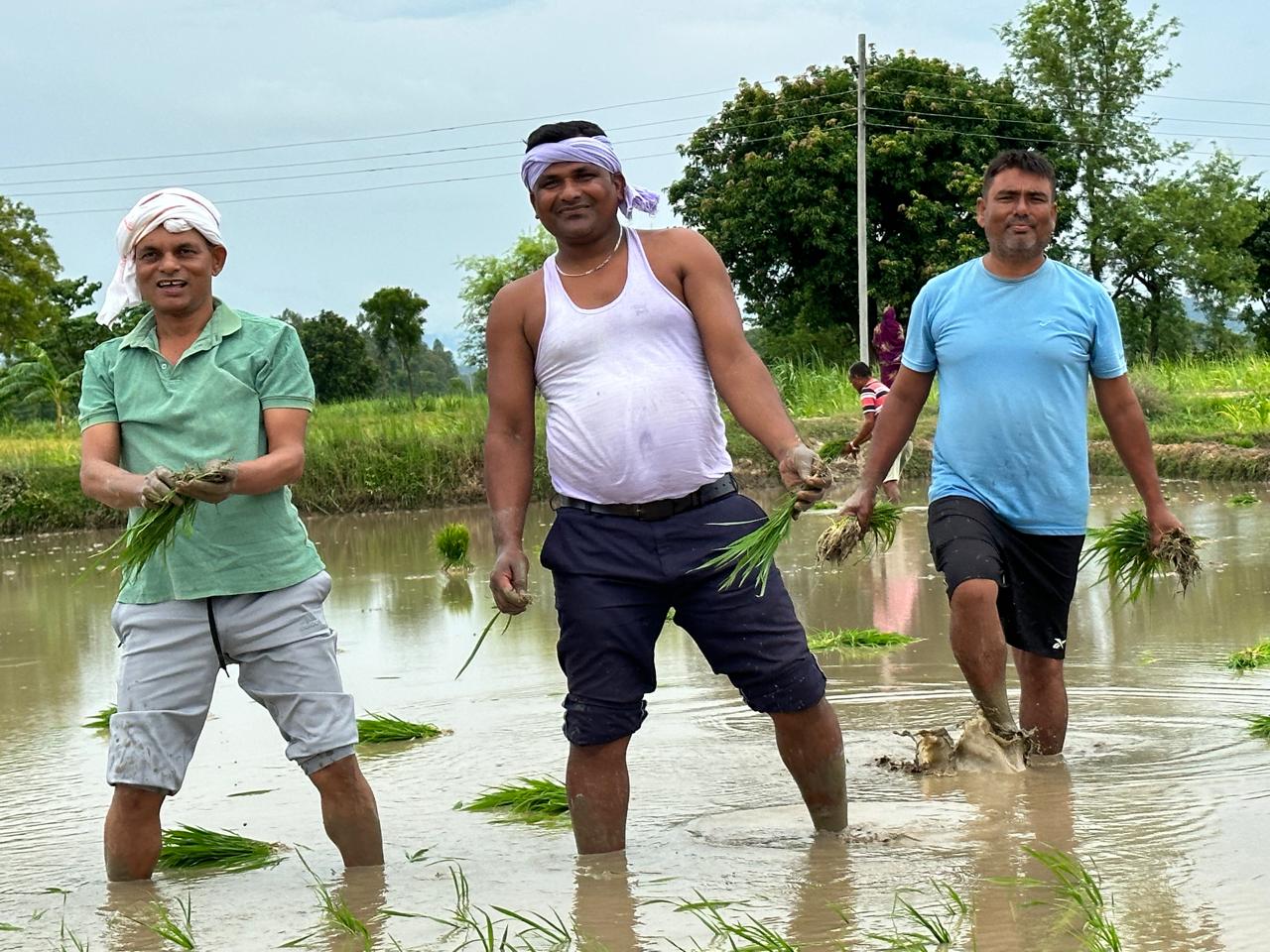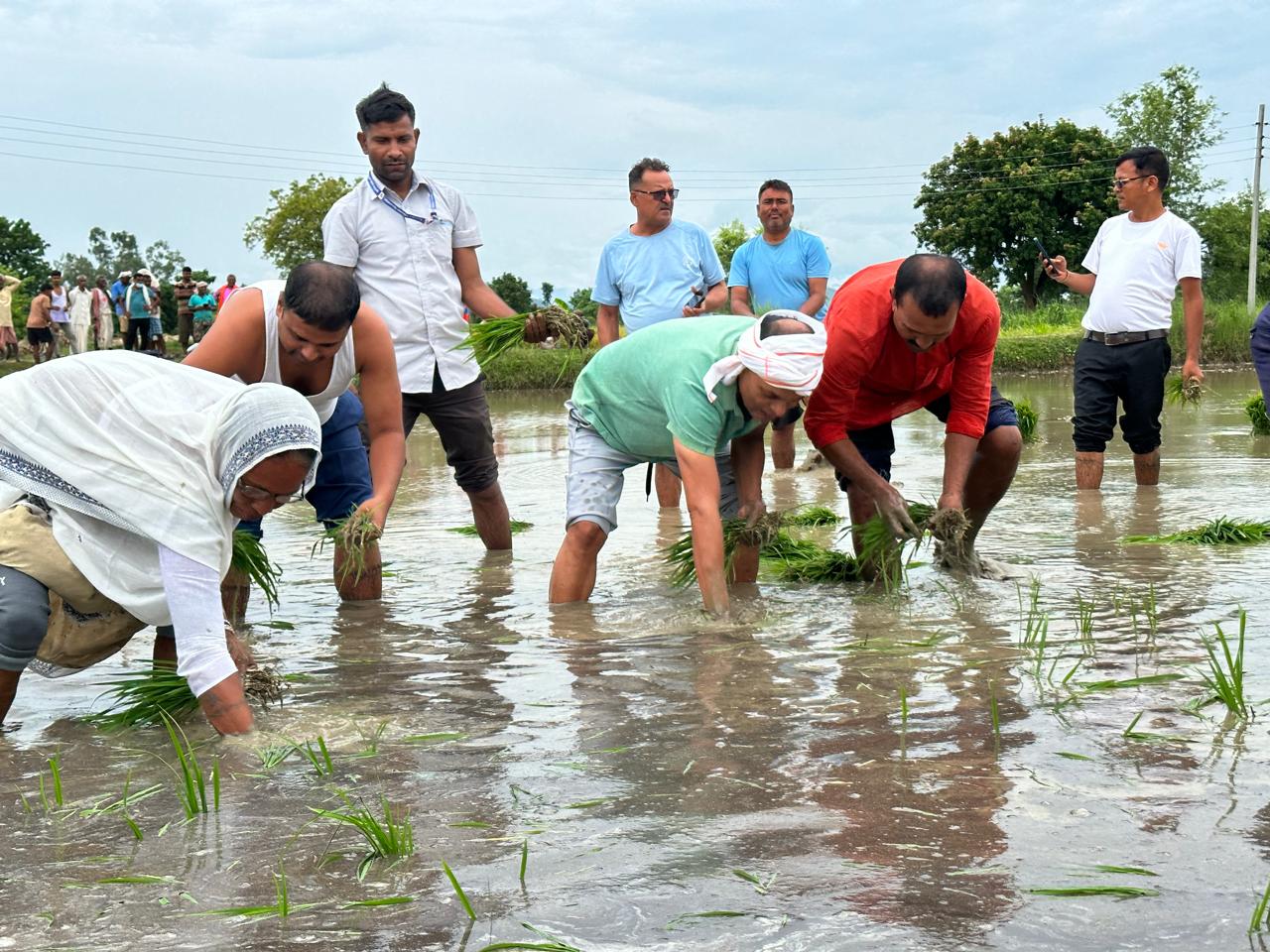 सभामुख मण्डलसहित किसानहरुको समुहले करिब ५ कठ्ठा खेतमा धान रोपाइँ गरेका छन् ।