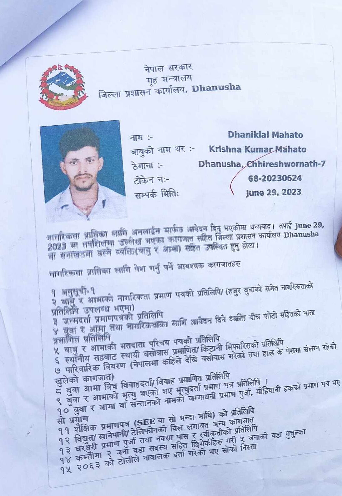 जिल्ला प्रशासन धनुषामा खुल्यो नागरिकताको टेण्डर, १० देखि २५ हजारसम्म रेट निर्धारण !