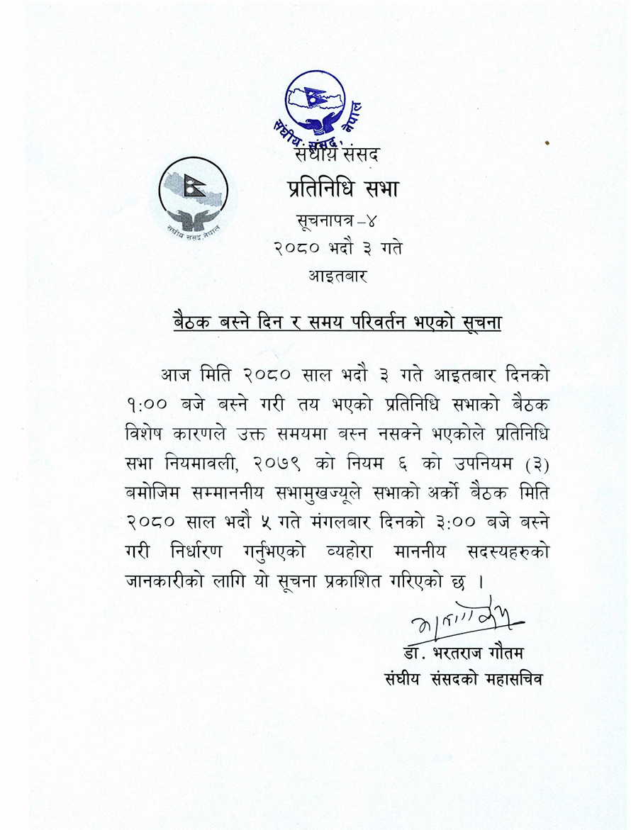 काठमाडौं, ०३ भदौ । आइतबार बोलाइएको प्रतिनिधिसभाको बैठक बस्दै नबसी स्थगित भएको छ ।