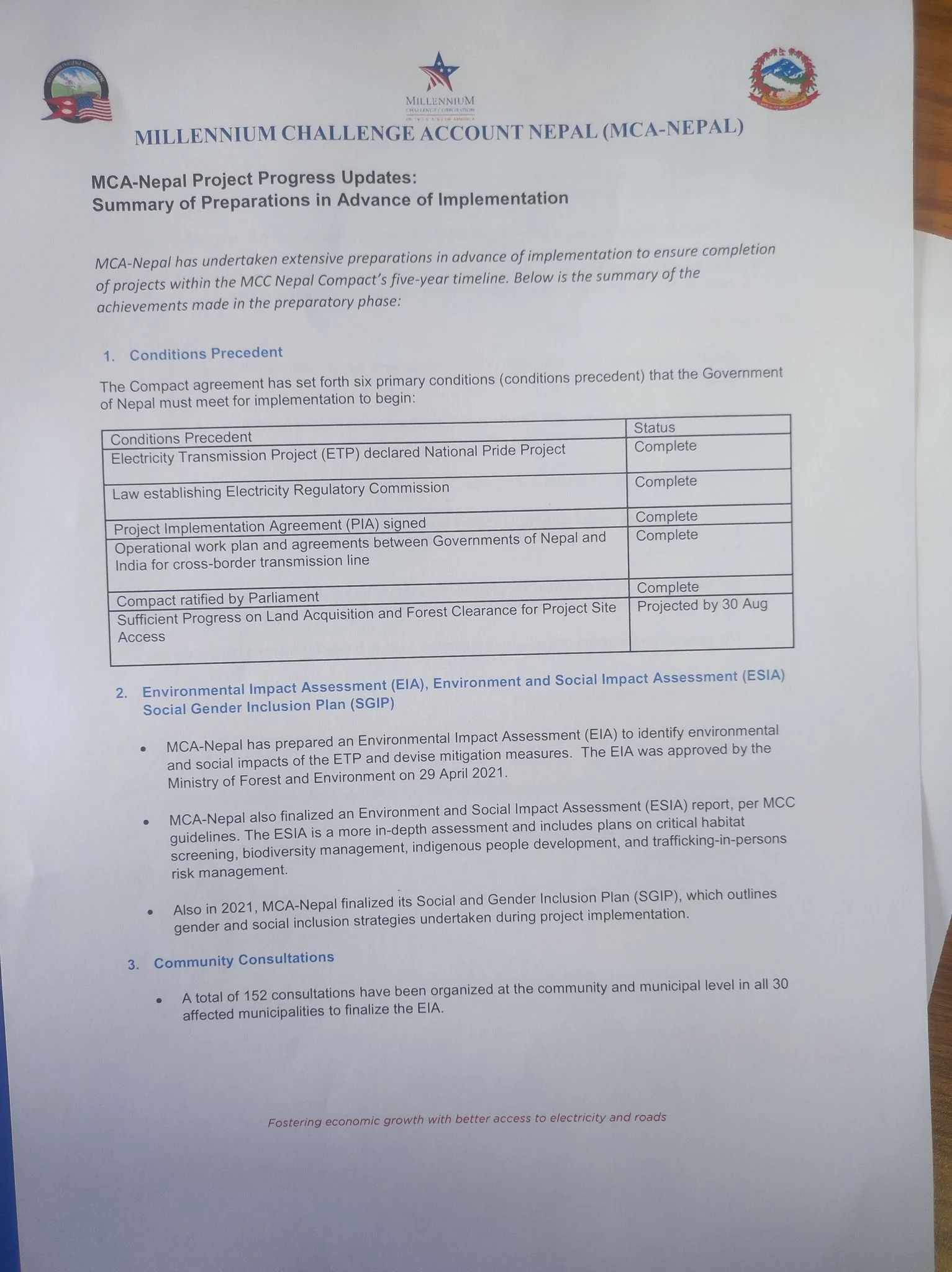 एमसीसी नेपाल कम्प्याक्ट कार्यान्वयन चरणमा प्रवेश