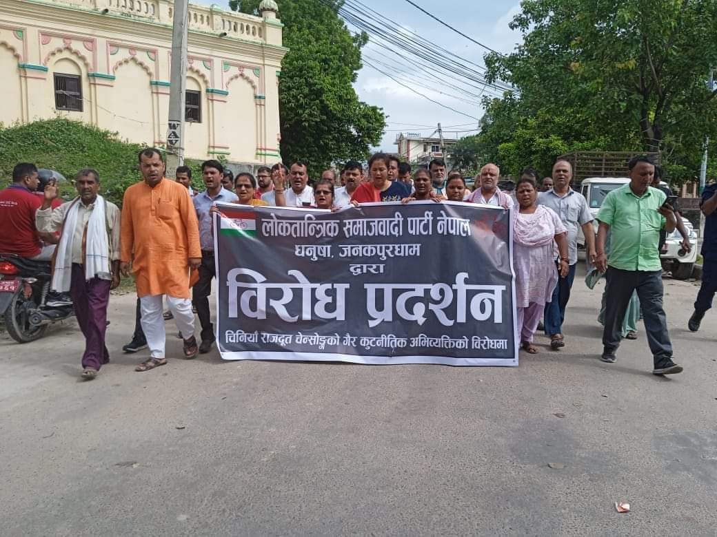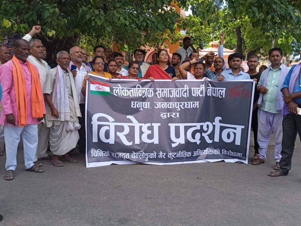 चिनियाँ राजदूतको अभिव्यक्तिको विरोधमा लोसपाद्वारा जनकपुरमा प्रदर्शन