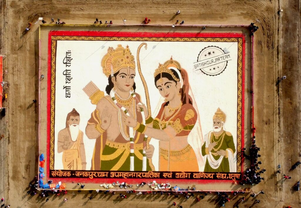 जनकपुरधाम, मंसिर ३० गते । सीताराम विवाह महोत्सवका अवसरमा रंगभूमि मैदानमा दश हजार स्क्यावर फिटको सीतारामको आकृति तयार भएको छ ।