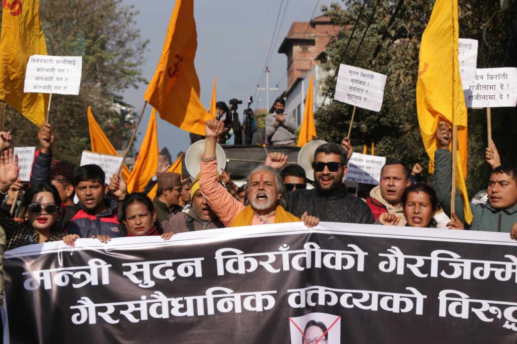 पर्यटनमन्त्रीको राजीनामा माग गर्दै हिन्दू संघद्वारा काठमाडौंमा प्रदर्शन