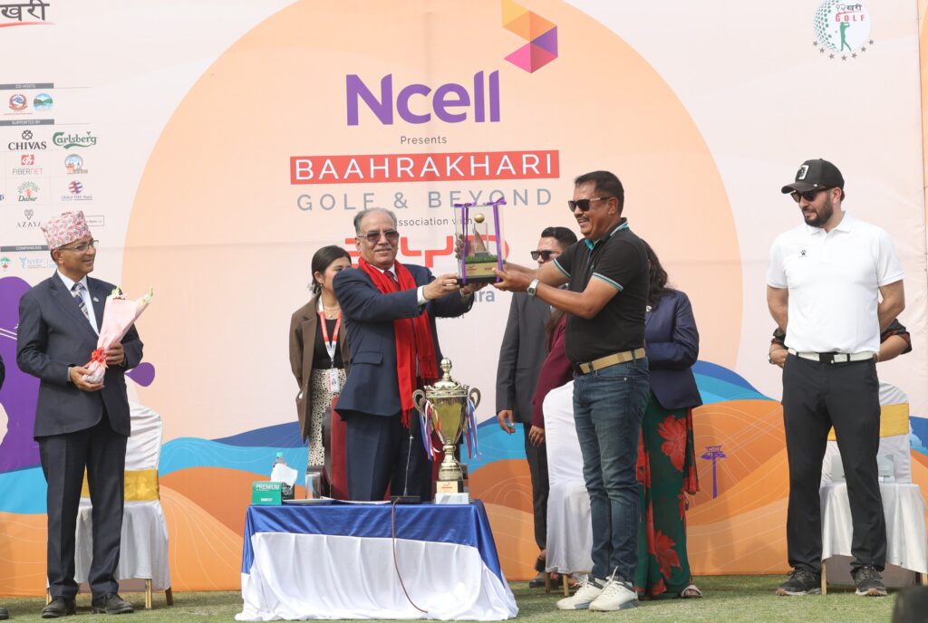 बाह्रखरी मिडियाद्वारा कास्कीको पोखरामा आयोजित ‘आमन्त्रण गल्फ प्रतियोगिता’का विजयीलाई शनिवार पुरस्कार प्रदान गर्दै प्रधानमन्त्रीले नेपालमा केही छैन, केही हुँदैन भन्ने भाष्य परिवर्तन गर्नुपर्ने भन्दै त्यसका लागि व्यवसायीले ढुक्क भएर लगानी गर्नुपर्ने बताए ।