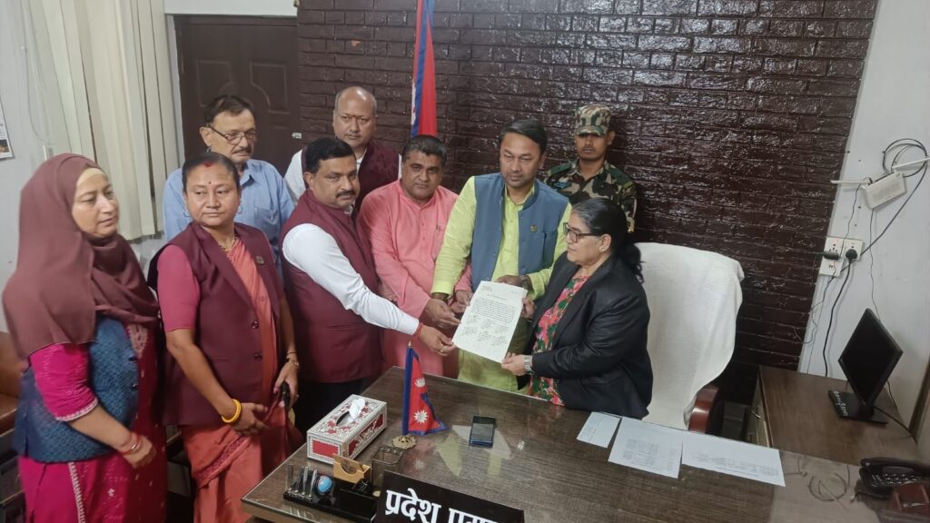 ५५ सांसदको हस्ताक्षर सहित सिंहले शुक्रबार बिहान प्रदेश प्रमुख सुमित्रा सुवेदी भण्डारी समक्ष मुख्यमन्त्रीमा दावी पेश गरेका हुन्।