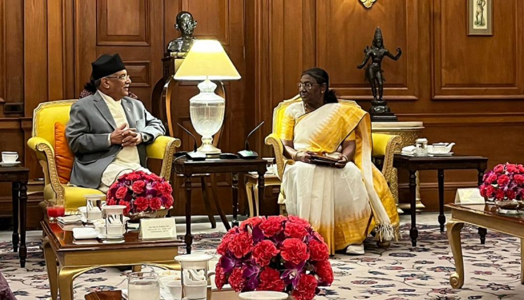 काठमाडौँ, २८ जेठ । भारतको औपचारिक भ्रमणमा रहनुभएका प्रधानमन्त्री पुष्पकमल दाहाल ‘प्रचण्ड’ ले राष्ट्रपति द्रौपदी मुर्मूसँग शिष्टाचार भेट गर्नुभएको छ ।
