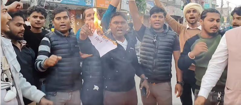 मधेशी युवालाई लक्षित गर्दै कुटपिट घटनाको विरोधमा जनकपुरधाममा गृहमन्त्रीको पुत्ला दहन