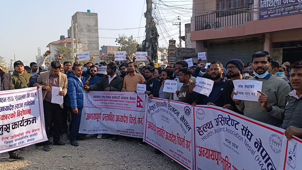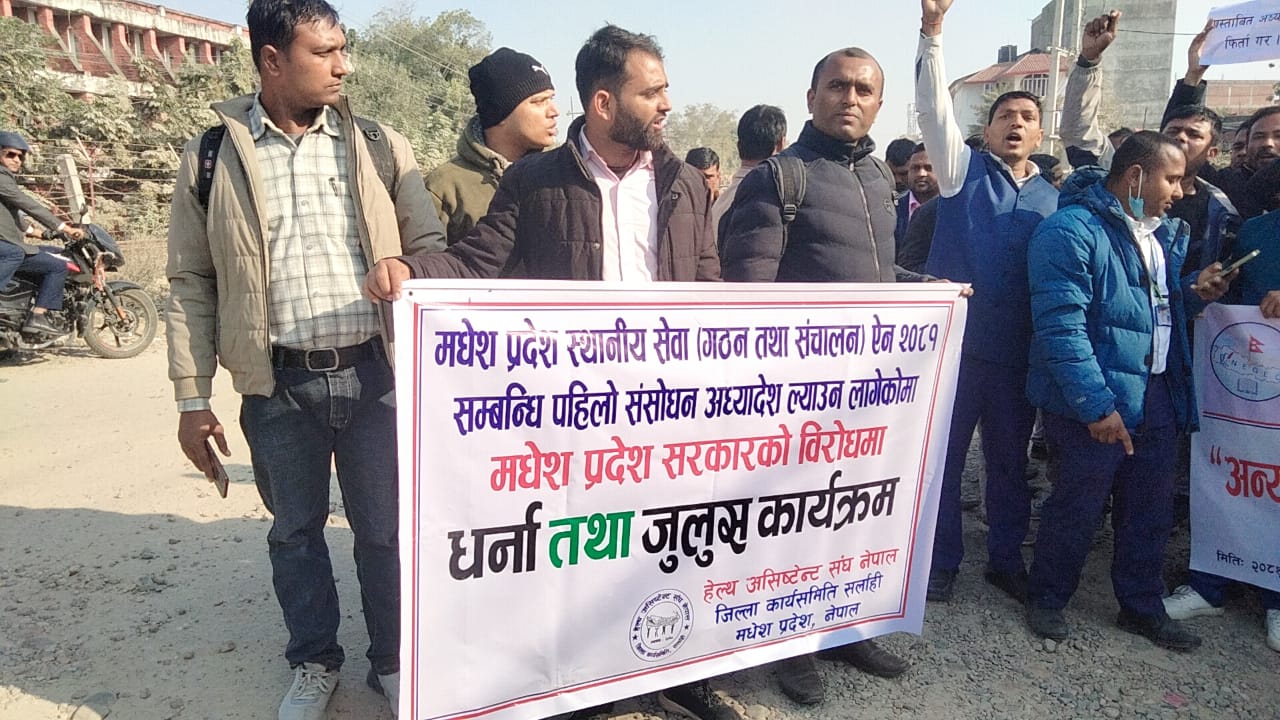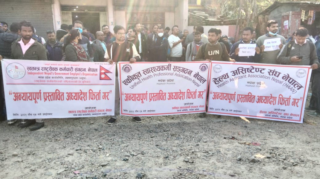 मधेश सरकारले ल्याउन लागेको स्थानीय सेवा ऐनसम्बन्धी अध्यादेशप्रति स्वास्थ्य सेवाका कर्मचारीको आपत्ति