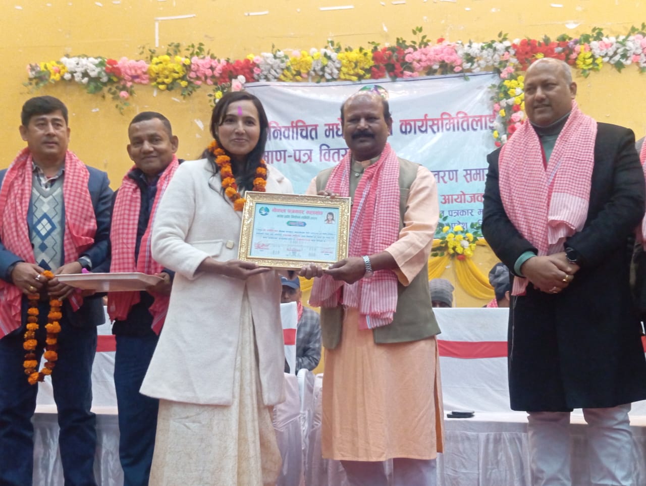 मंसिर २८ गते देशैभरमा पत्रकार महासंघको निर्वाचन भएको थियो । त्यसै अनुसार मधेश प्रदेशमा निर्वाचित नयाँ कार्यसमतिलाई निर्वाचन समितिका संयोजक वरिष्ठ पत्रकार रामभरत साहले प्रमाणपत्र वितरण गरेका छन् ।