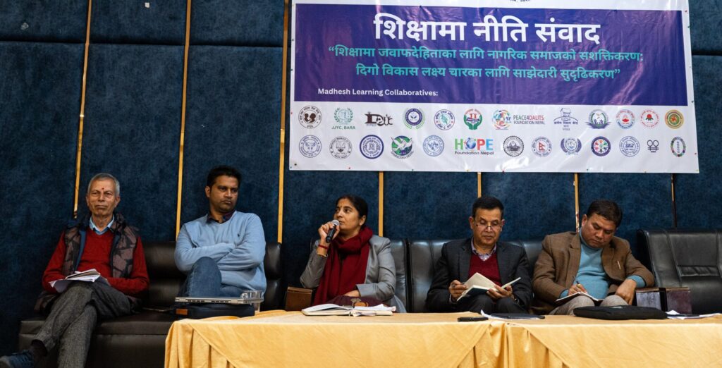 कारखाना समूह काठमाण्डौको नेतृत्वमा दलित समाज सेवा संघ सिरहासँगको साझेदारी र Global Partnership for Education (GPE) द्धारा आर्थिक सहयोगमा सञ्चालित Education Out Loud कार्यक्रम अन्तर्गत Civil Society Empowerment for Accountable Education (CSE) परियोजना अन्तर्गत ‘शिक्षा नीति संवाद’ कार्यक्रम आज जनकपुरमा सम्पन्न भएको हो ।