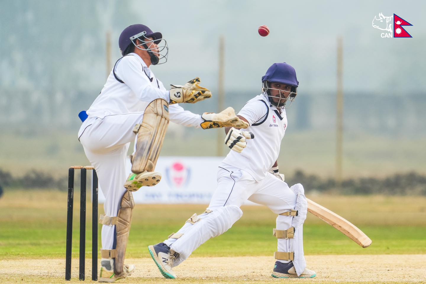 तेस्रो नम्बरका ब्याट्सम्यान निरज यादवले १२ रन बनाए । उनले ३५ बलमा एक चौका प्रहार गरे । चौथो नम्बरमा क्रिज सम्हाल्न आएका साहिल पटेल ६ रनमै आउट भए । विकेटकिपर ब्याट्सम्यान हिमांशु दत्त पनि १० रनभन्दा अगाडि बढ्न सकेनन् ।