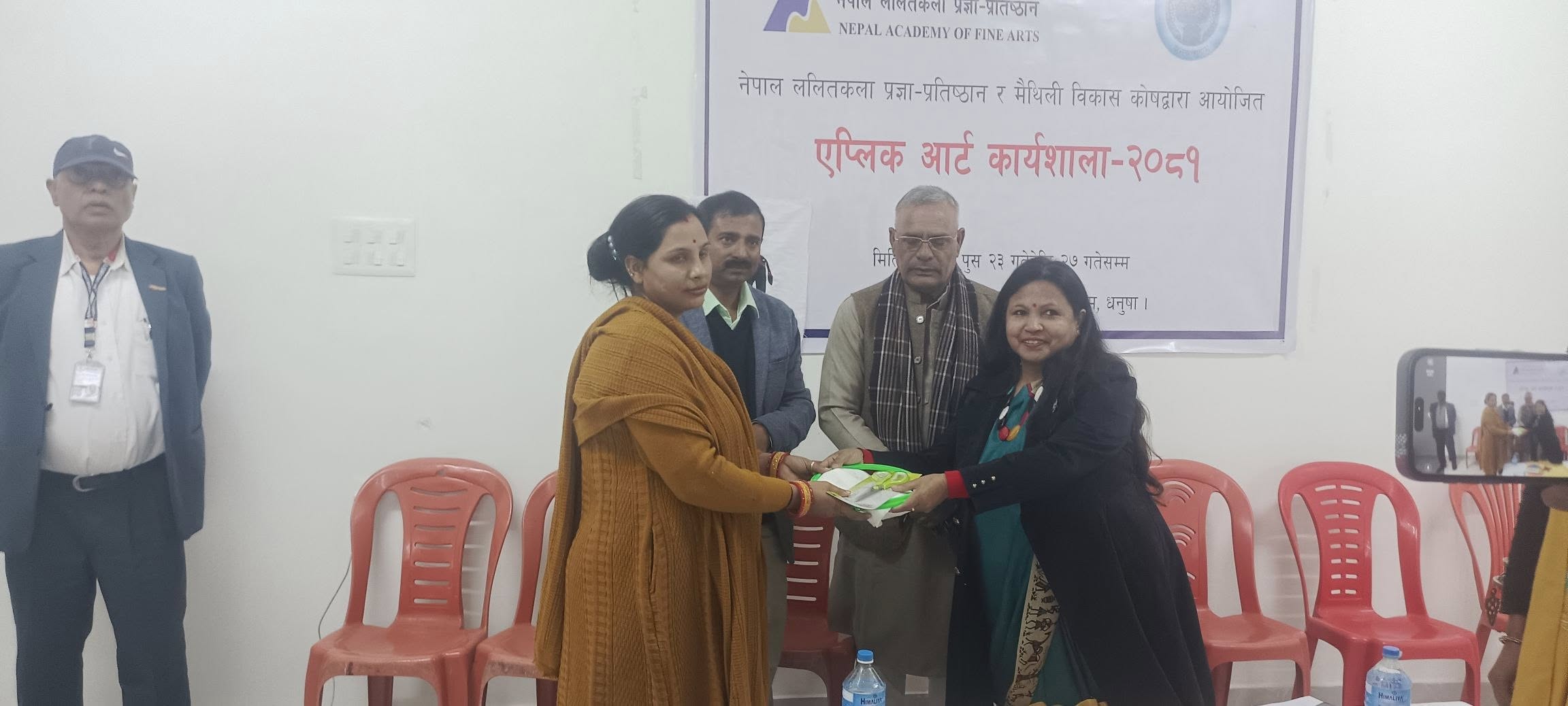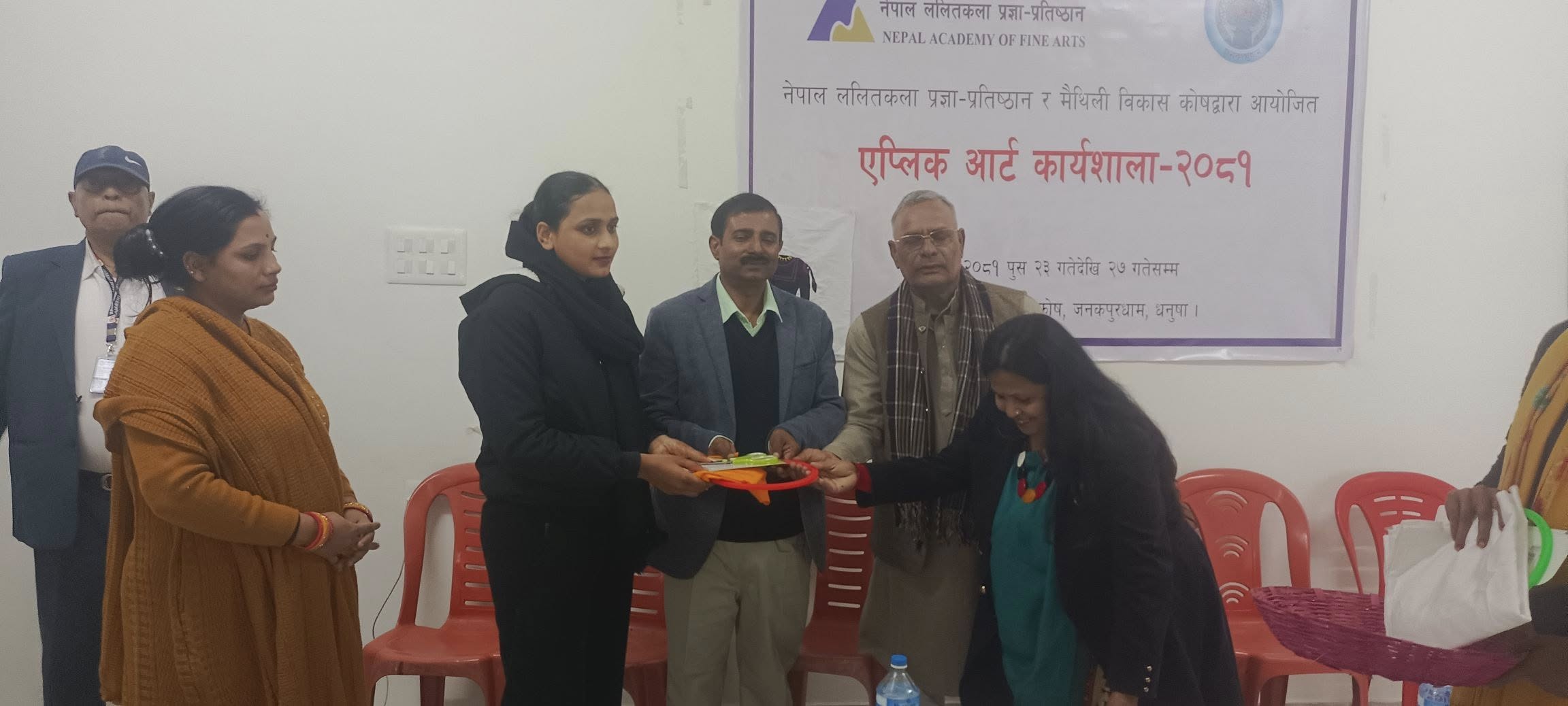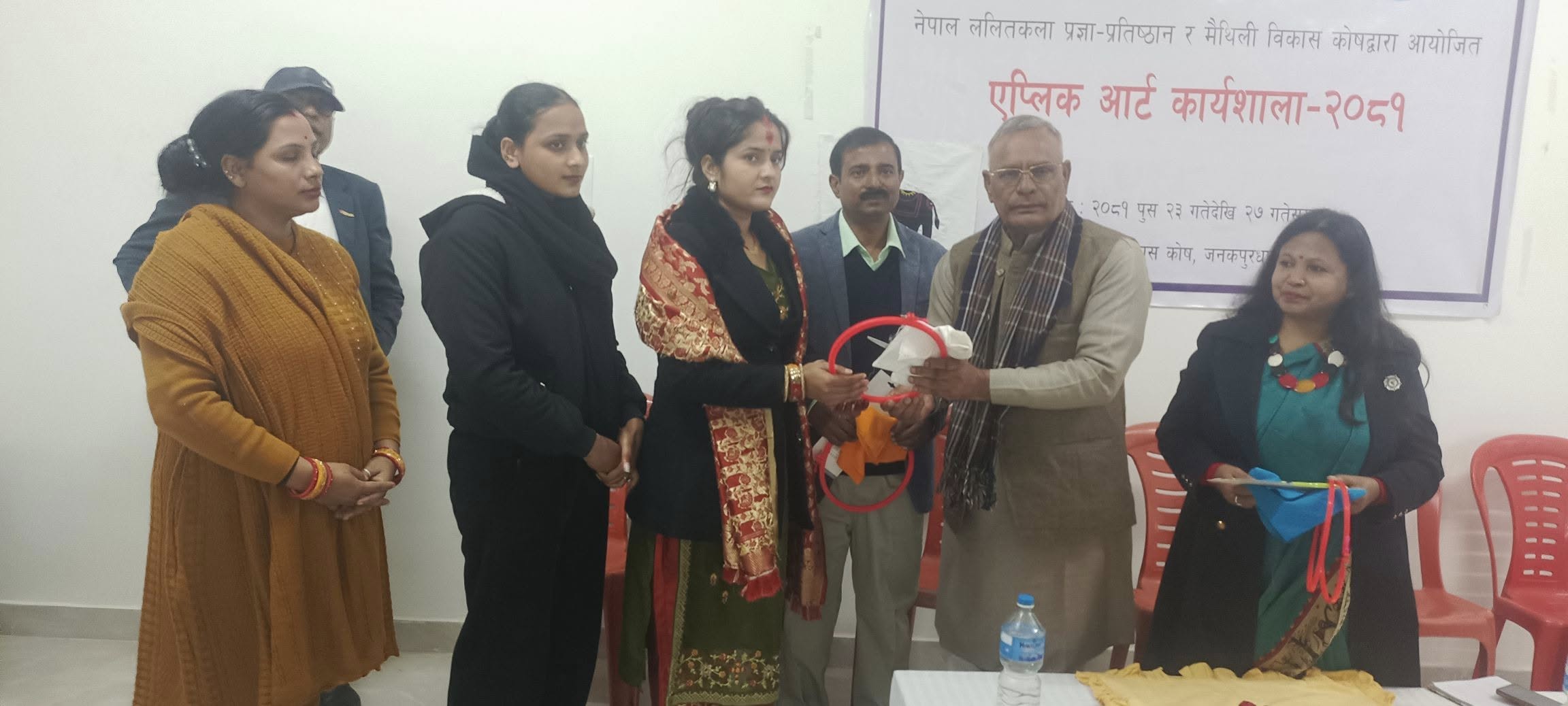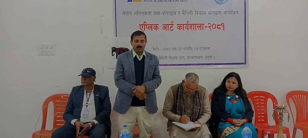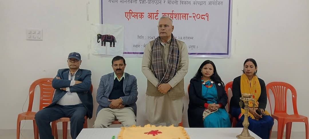 जनकपुरधाम, २४ पुष । नेपाल प्रज्ञा प्रतिष्ठान र मैथिली विकास कोष जनकपुरधामको संयुक्त आयोजनामा पाँचदिवसीय एप्लिक आर्ट कार्यशालाको शुभारम्भ भएको छ । कार्यशाला मैथिली विकास कोषको नयाँ भवनमा आयोजित गरिएको हो ।