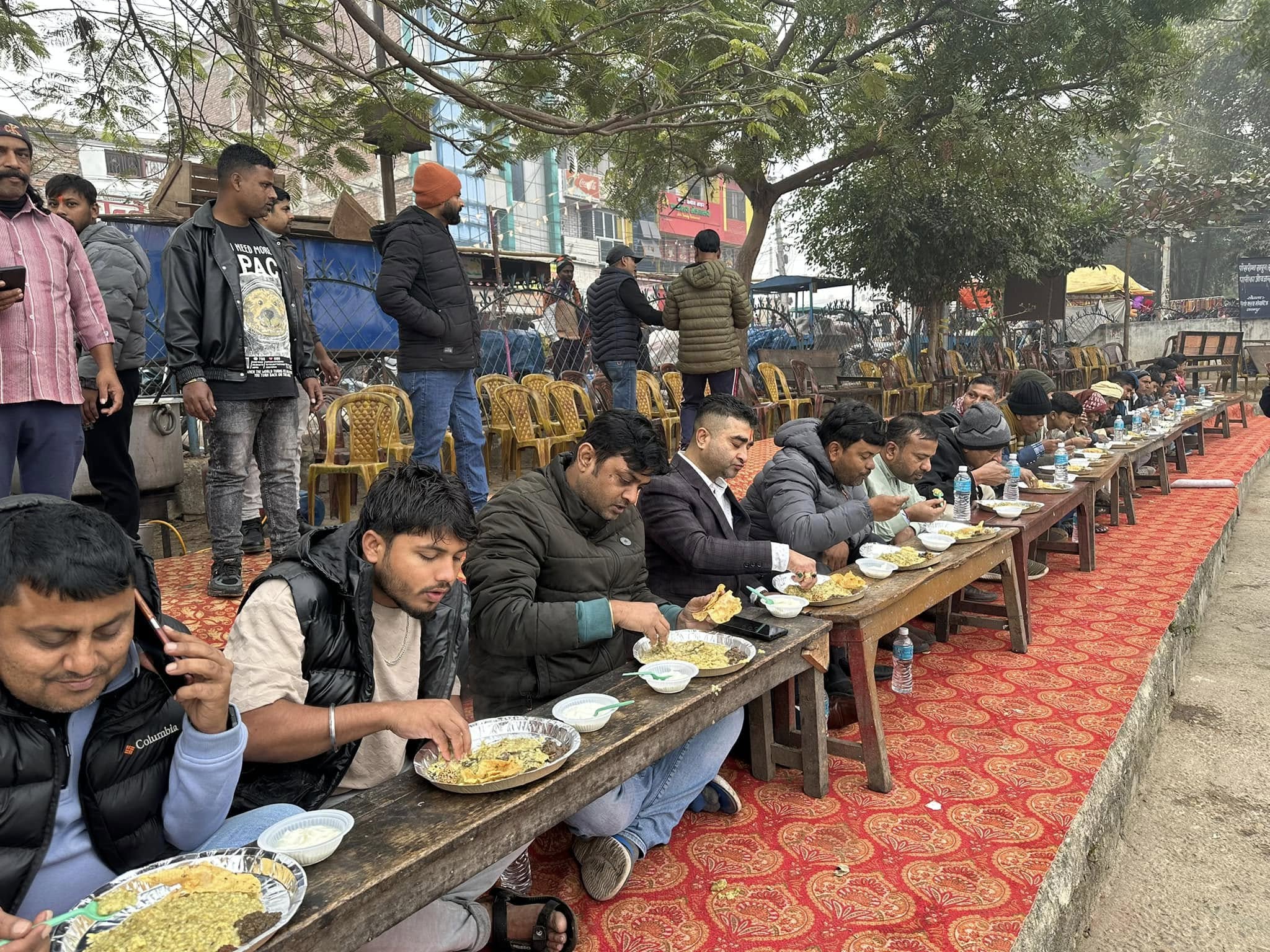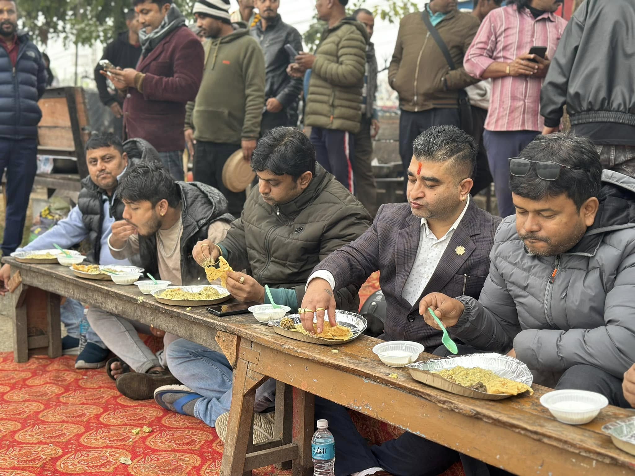 भोजमा खिचडी, पापड, अचार, दही, चिनी, घ्यूसहितको परिकारको व्यवस्था गरिएको थियो । भोजमा विभिन्न राजनीतिक दलका नेता, उद्योगी, व्यापारी, स्थानीय, सञ्चारकर्मी तथा समाजसेवीहरुको उपस्थिति रहेको थियो ।