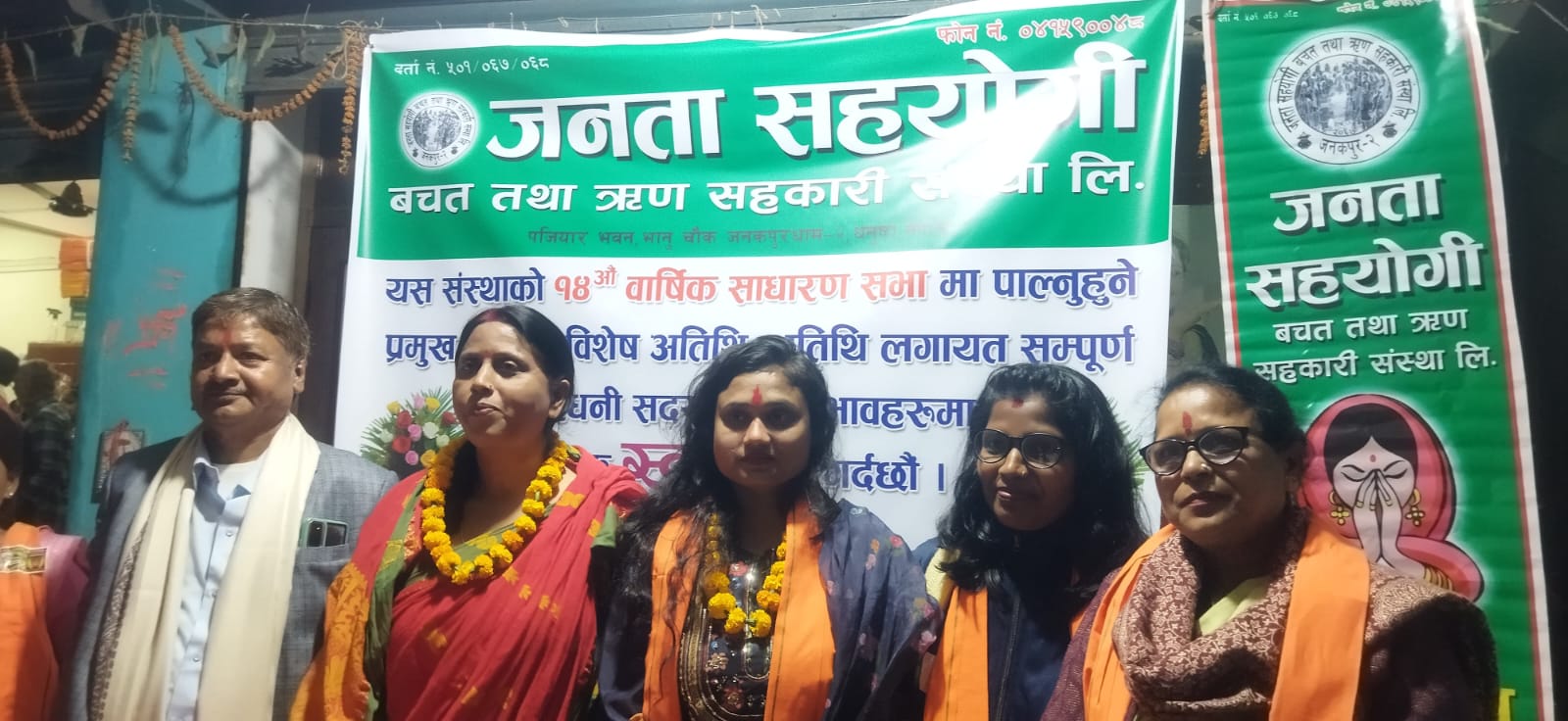 जनकपुरधाम, ५ माघ । जनता सहयोगी बचत तथा ऋण सहकारी संस्था लिमिटेडले आफ्नो १४औँ वार्षिक साधारण सभाको उपलक्ष्यमा एक दिवसीय निःशुल्क स्वास्थ्य शिविरको आयोजना गरेको छ ।