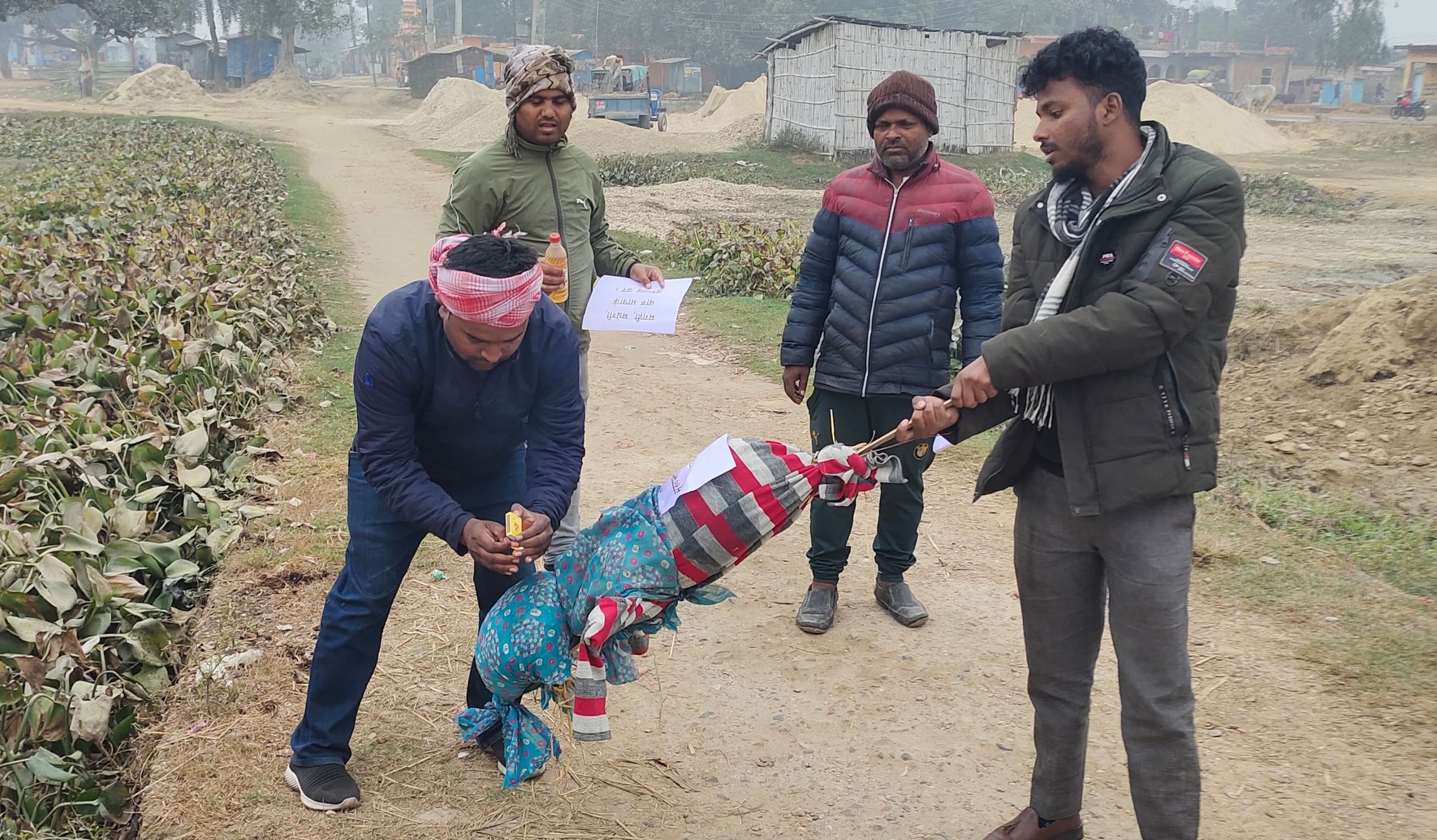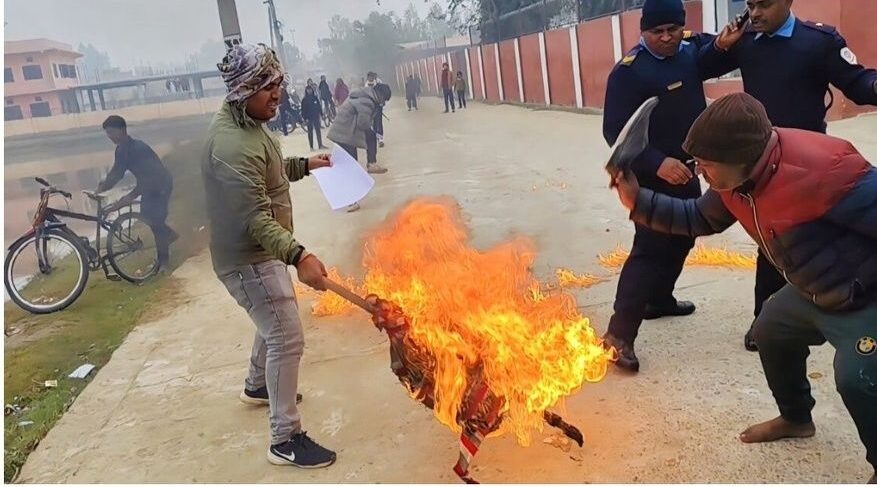 विधेयक सच्याउन माग गर्दै मगही अभियन्ताद्वारा मधेश प्रदेश सभा भवन अगाडि पुत्ला दहन