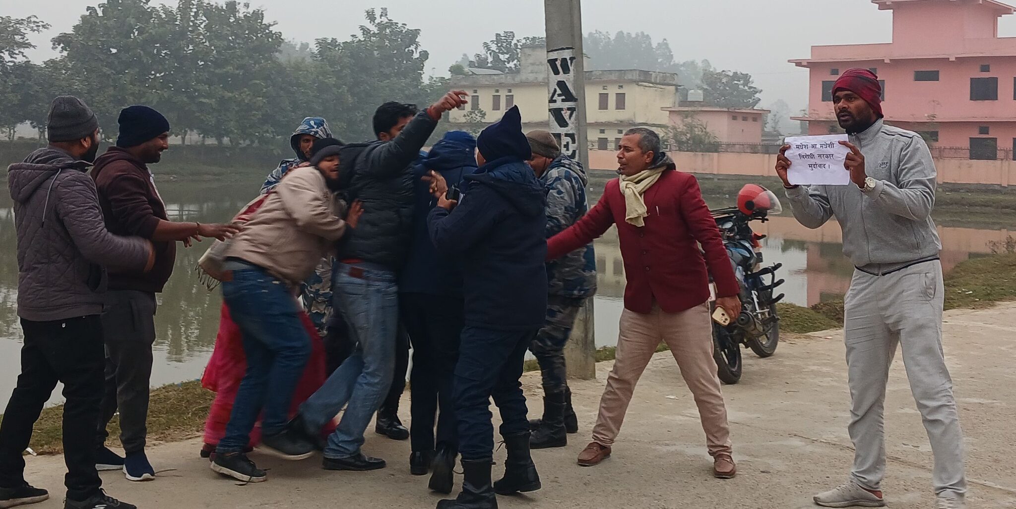 भाषा विधेयकप्रति आपत्ति जनाउँदै जनमतद्वारा प्रदेश सभा भवन अगाडि विरोध प्रदर्शन