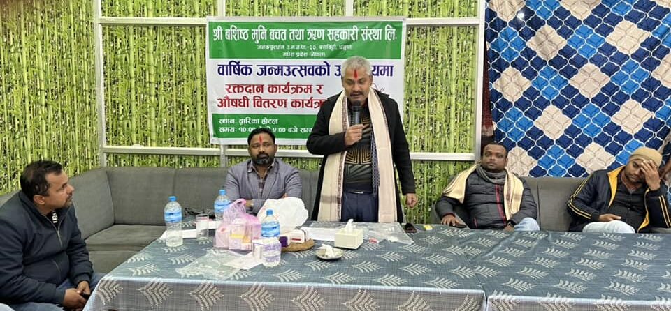 जनकपुरधाम, १५ माघ । जनकपुरधाम उपमहानगरपालिका वडा नं. २२ बसबिट्टीस्थित श्री बशिष्ठ मुनि बचत तथा ऋण सहकारी संस्था लिमिटेडको १८औं स्थापना दिवसको उपलक्ष्यमा विशेष रक्तदान र औषधि वितरण कार्यक्रम सम्पन्न गरिएको छ ।