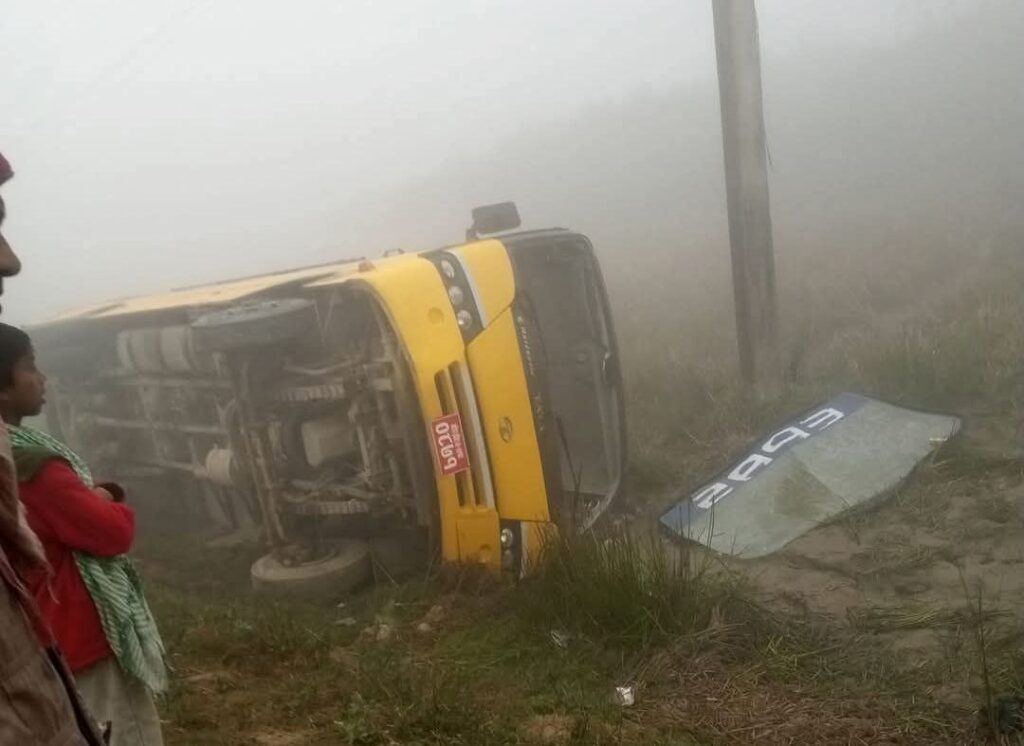 जनकपुरधाममा बाक्लो हुस्सुका कारण स्कूल बस दुर्घटना, चार विद्यार्थी घाइते