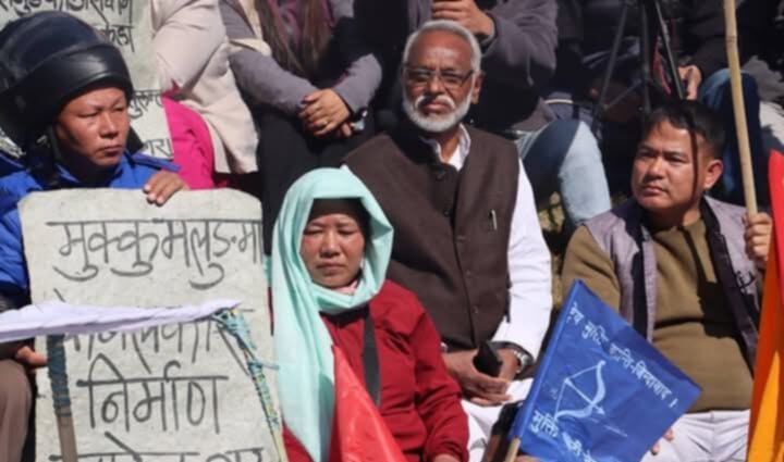 काठमाडौँ, २१ माघ । मुकुमलुङ संरक्षण संघर्ष समितिको आह्वानमा माइतीघर मण्डलामा आयोजित विरोध प्रदर्शनमा राष्ट्रिय मुक्ति पार्टी नेपालका अध्यक्ष राजेन्द्र महतोले लिम्बुवान राज्यको अधिकारको मुद्दालाई जोड दिएका छन् ।