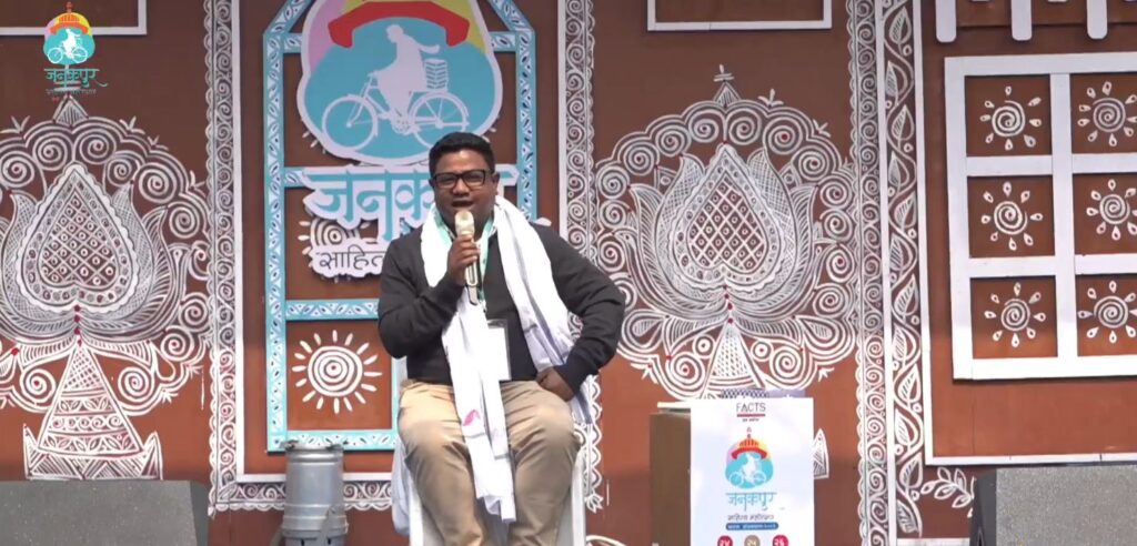 जनकपुरधाम, २६ माघ । जनकपुरधाममा जारी छैटौं जनकपुर साहित्य महोत्सवको तेस्रो तथा अन्तिम दिनको सत्रमा ‘राज्यको दृष्टिमा मधेश’ शीर्षकमा भएको छलफलमा प्रतिनिधिसभा सदस्य सन्तोष परियारले आफ्नो धारणा राख्दै मधेशको पहिचान, अधिकार र विकासको सवालमा गहिरो विचार राखेका छन् ।