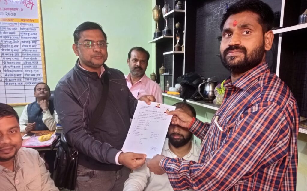 जनकपुरधाम, २० फागुन । आगामी फागुन २४ गते शनिवार हुने महावीर युवा कमिटीको नयाँ कार्यसमितिको अध्यक्ष पदका लागि महेश कुमार साहले उम्मेदवारी दर्ता गराएका छन् । आज उम्मेदवारको मनोनयन पत्र दर्ता गरिएको हो ।