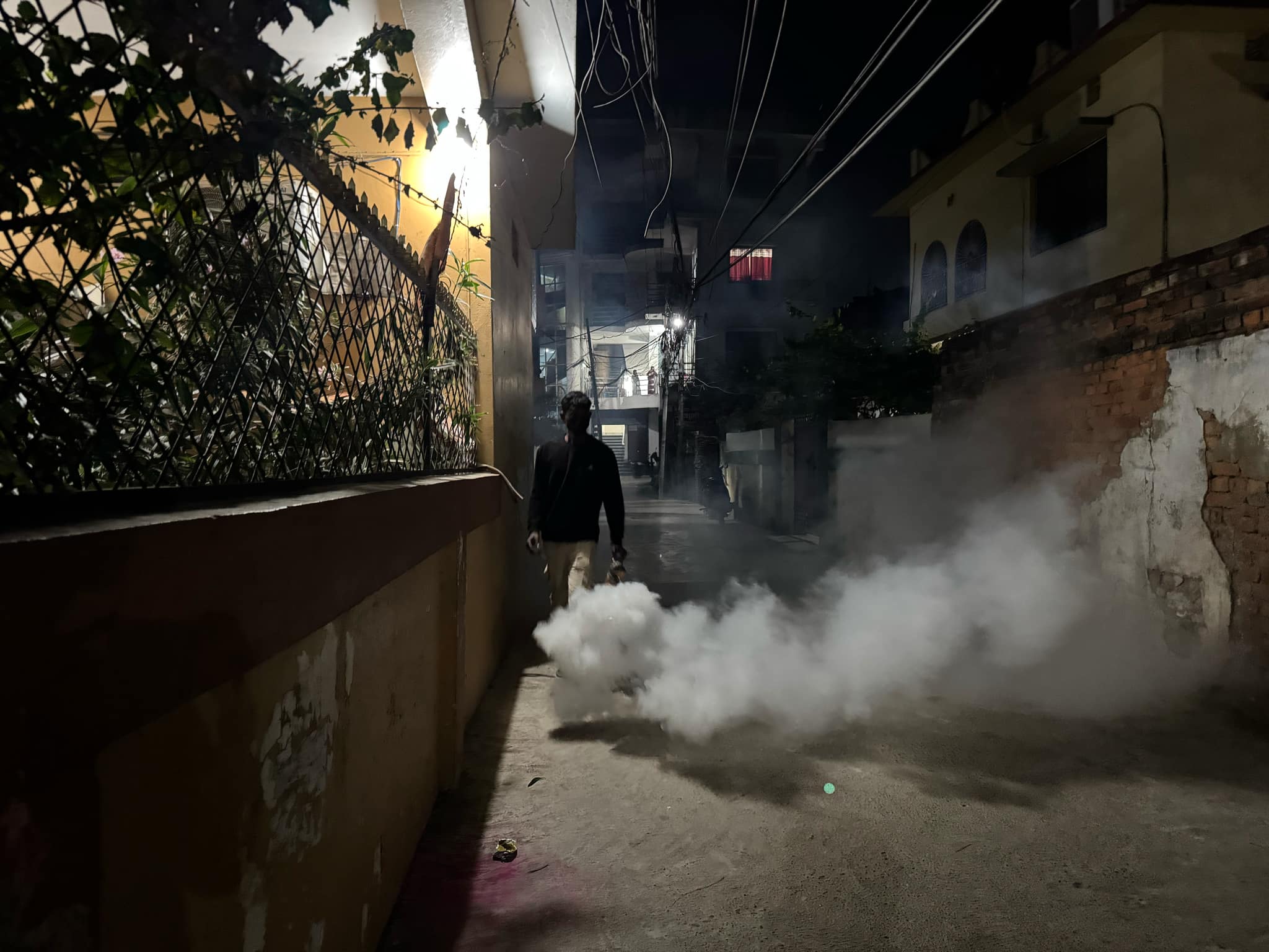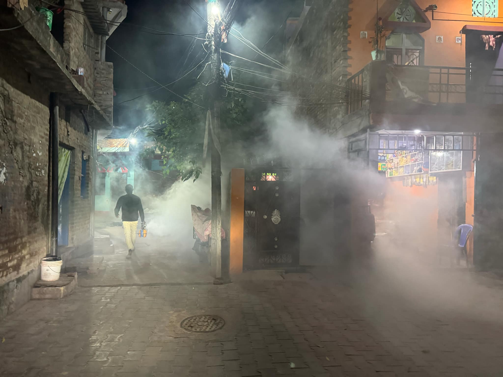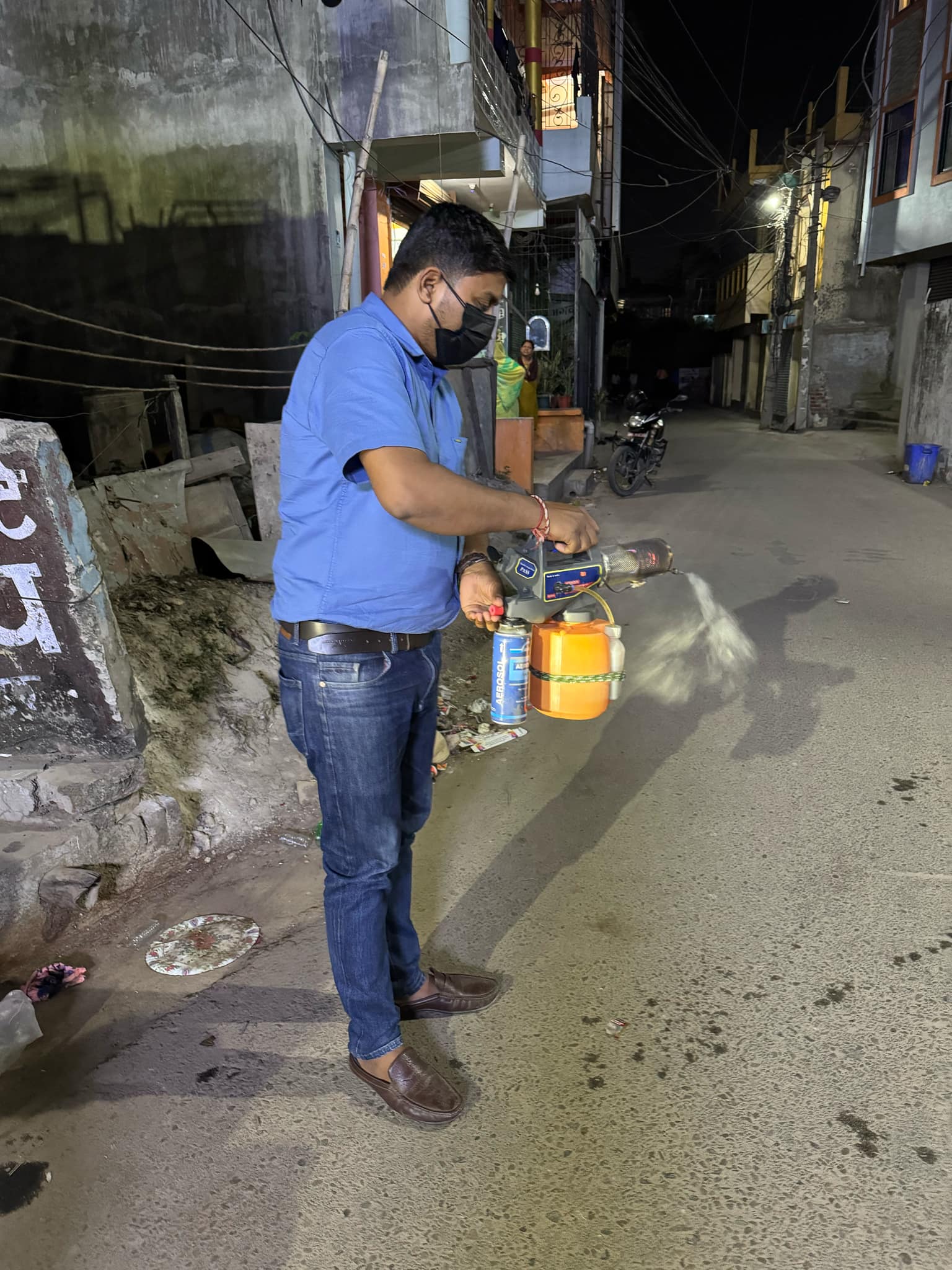 वडा सदस्य अमित कुमार साहको नेतृत्वमा टोलटोलमा कीटनाशक औषधि छर्किँदै स्थानीय बासिन्दालाई लामखुट्टेको जोखिमबाट बचाउने प्रयास गरिएको हो ।