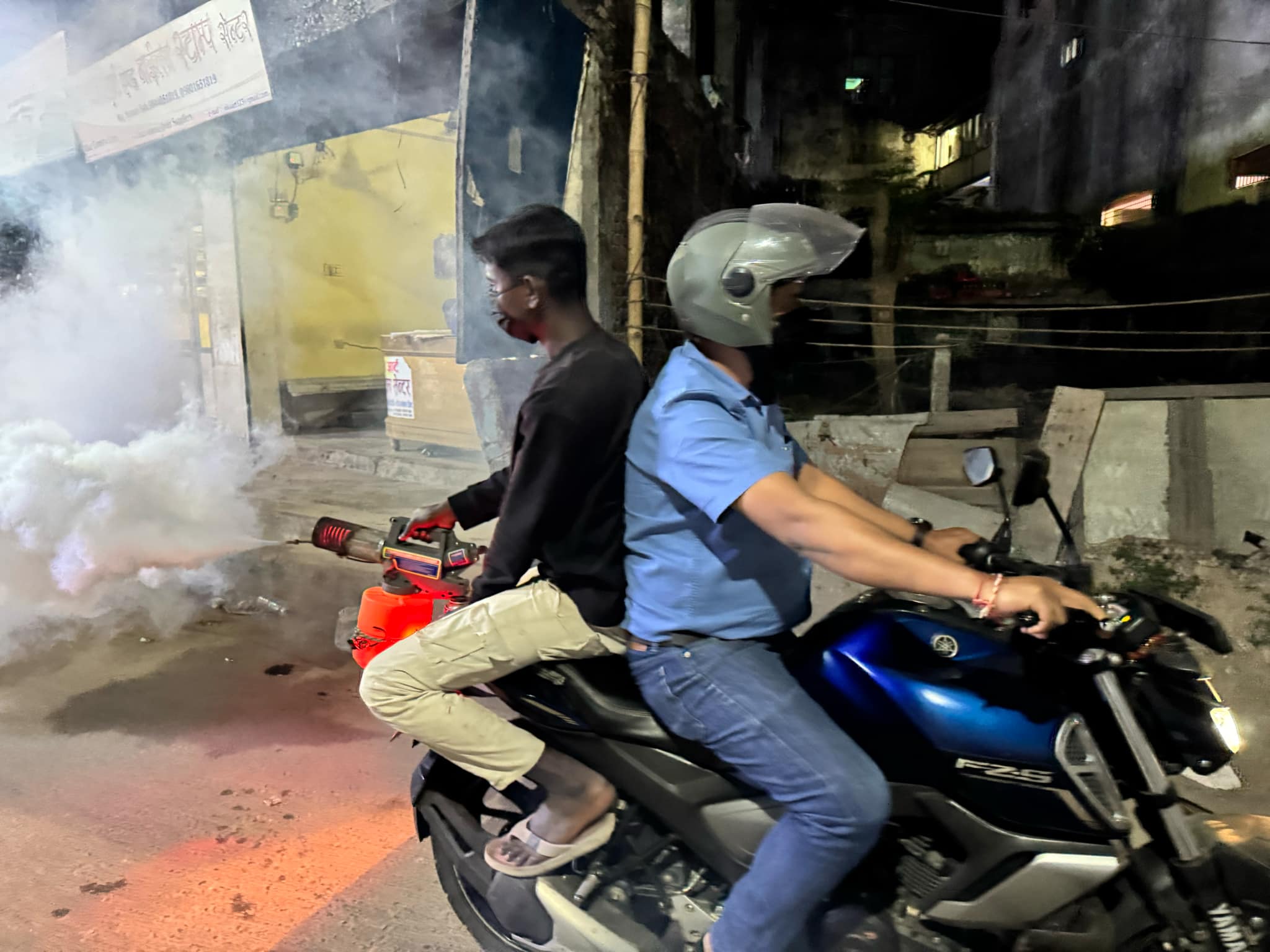 वडा कार्यालयको समन्वयमा कर्मचारीहरूको टोली मोटरसाइकलमा सवार हुँदै विभिन्न स्थानमा फगिङ गर्दैछ। यो अभियानका क्रममा प्रमुख सडक, गल्ली, बस्ती र लामखुट्टे प्रजनन हुने स्थानहरूलाई प्राथमिकता दिइएको छ।