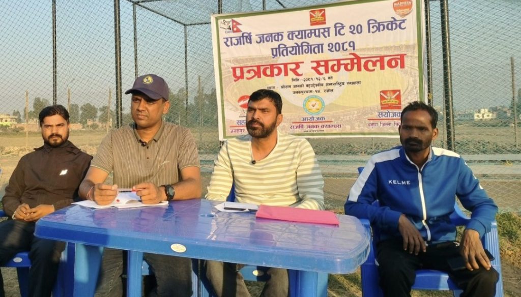 जनकपुरधाम, ६ चैत । राजर्षि जनक क्याम्पसको आयोजना र जिल्ला क्रिकेट संघ धनुषाको संयोजनमा यही चैत ९ गतेदेखि टि–२० क्रिकेट प्रतियोगिता सुरु हुँदैछ । जनकपुर पेस फाउण्डेशनको सहयोगमा हुने यो प्रतियोगिता केवल एक खेलकुद गतिविधि मात्र नभएर युवाहरूको शारीरिक र मानसिक विकासका लागि एक महत्वपूर्ण कदम हुनेछ ।