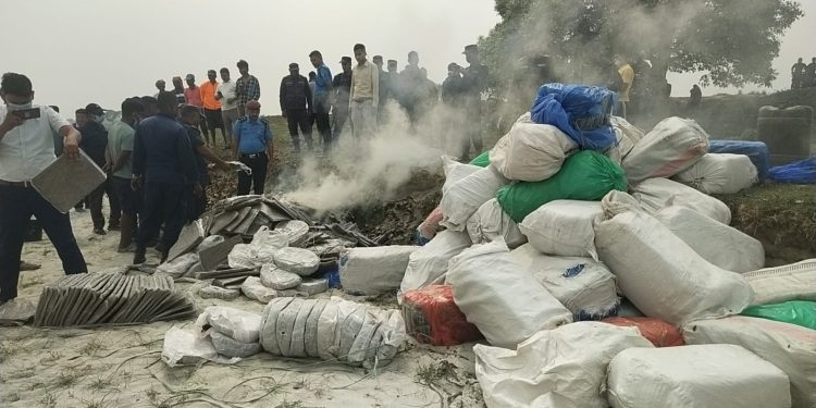 सप्तरी प्रहरीद्वारा २४ क्विन्टल गाँजा नष्ट