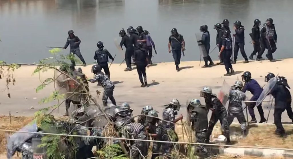 प्रहरीको लाठीचार्जपछि आक्रोशित भएका गाउँलेहरूले आक्रमण गरेपछि प्रहरीले पछि हट्दै अश्रुग्यास प्रहार गरेको थियो । झडपको क्रममा दुई महिला प्रहरी घटनास्थलमै फसेका थिए । उनीहरुलाई सञ्चारकर्मीहरूको सहयोगमा सुरक्षामा फर्काइएको थियो ।