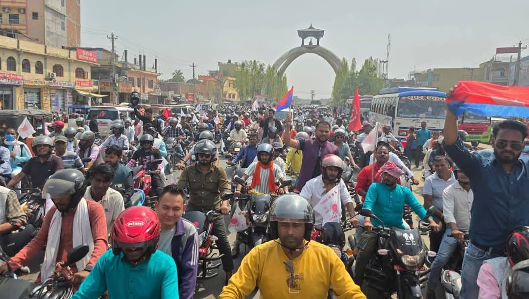 जनकपुरधाममा सरकारको समर्थनमा एमालेको मोटरसाइकल र्याली