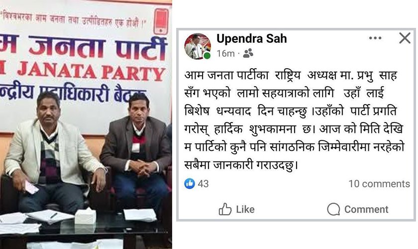 उपेन्द्र साहले पार्टीसँग असन्तुष्टि जनाउँदै छाडे प्रभु साहको साथ