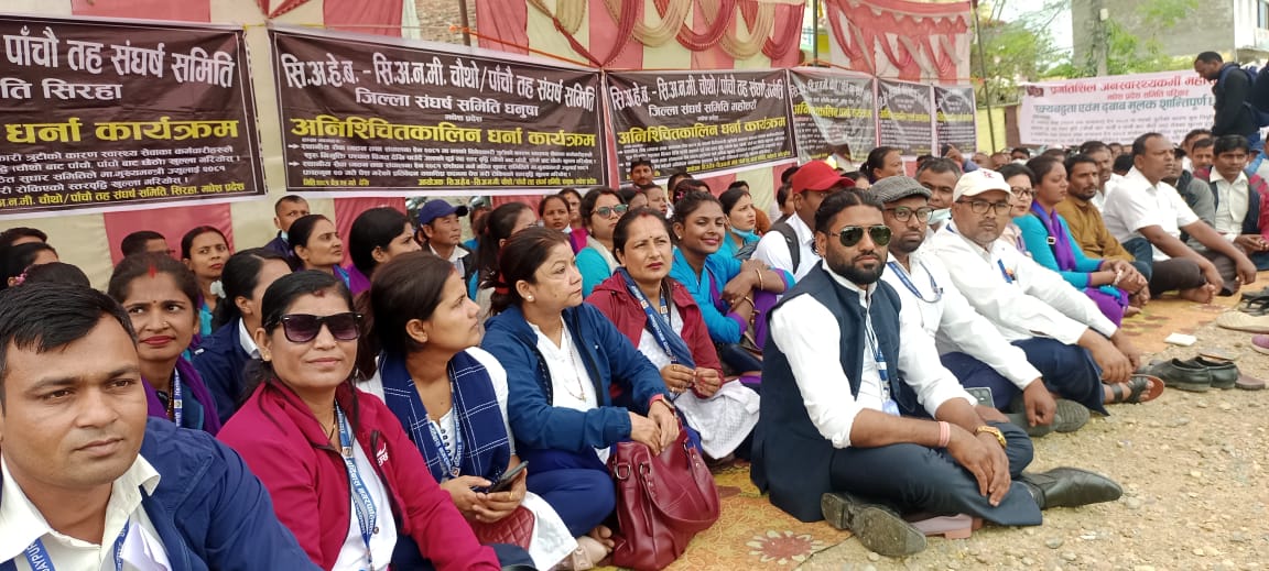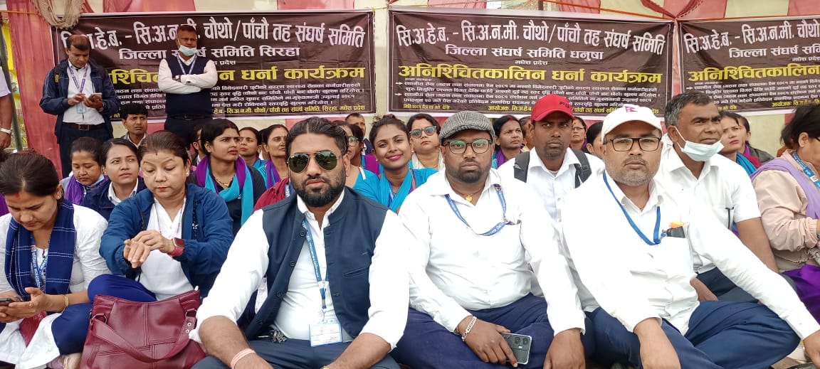 जनकपुरधाम, २८ चैत । मधेश प्रदेशका करिब १ हजार ८ सय स्वास्थ्यकर्मी चैत २५ गतेदेखि आफ्ना माग पुरा हुन नपाएर अनिश्चितकालिन धर्नामा बसिरहेका छन् । उनीहरू चैत महिनाको कठिन घाम र गर्मीसँगै हालैको वर्षा र झरीमा पनि निरन्तर आफ्नो संघर्ष जारी राखेका छन् ।