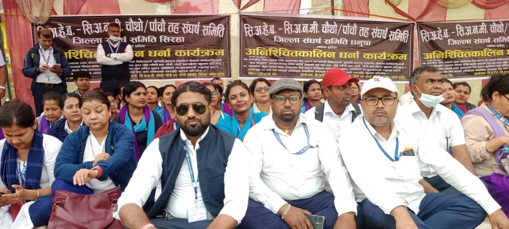 मधेश प्रदेश सरकारको नयाँ स्थानिय सेवा गठन र सञ्चालन ऐन २०८१ अनुसार भएको समायोजनमा अड्किएका समस्याहरूको समाधान स्वास्थ्यकर्मीहरूको मुख्य माग हो ।