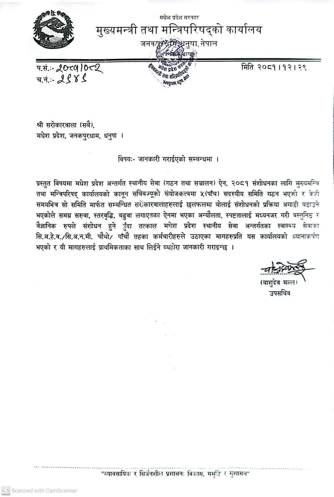 मधेश सरकारद्वारा स्थानीय सेवा ऐन संशोधनको प्रक्रिया सुरु, स्वास्थ्यकर्मीका मागलाई प्राथमिकता